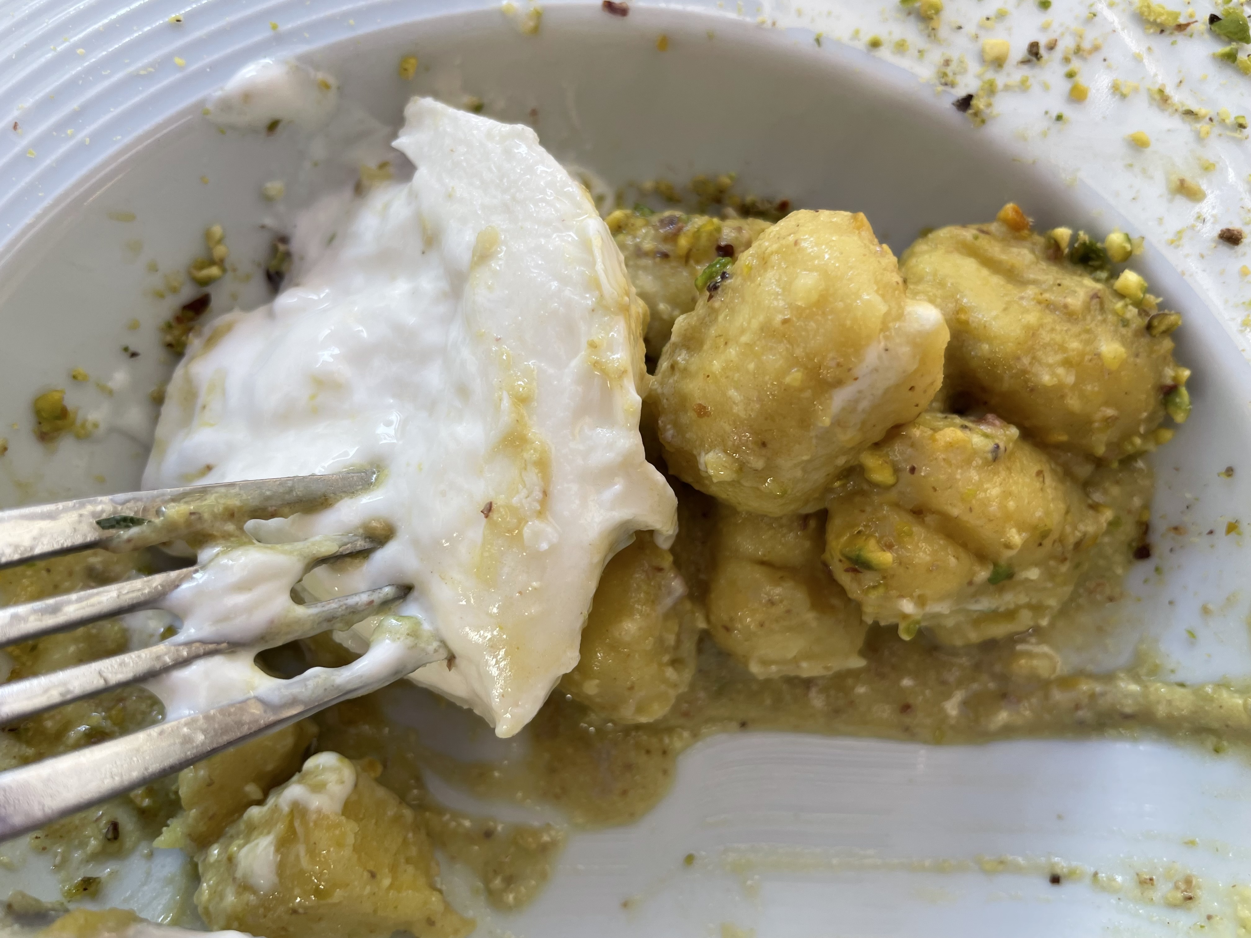 Bon et gentil J'ai pris des gnocchis à la pistache (spécial) et j'ai mélangé des rouleaux d'aubergines et des boulettes de viande de grand-mère. Tous très bons Un incontournable : les cannoli siciliens farcis frais