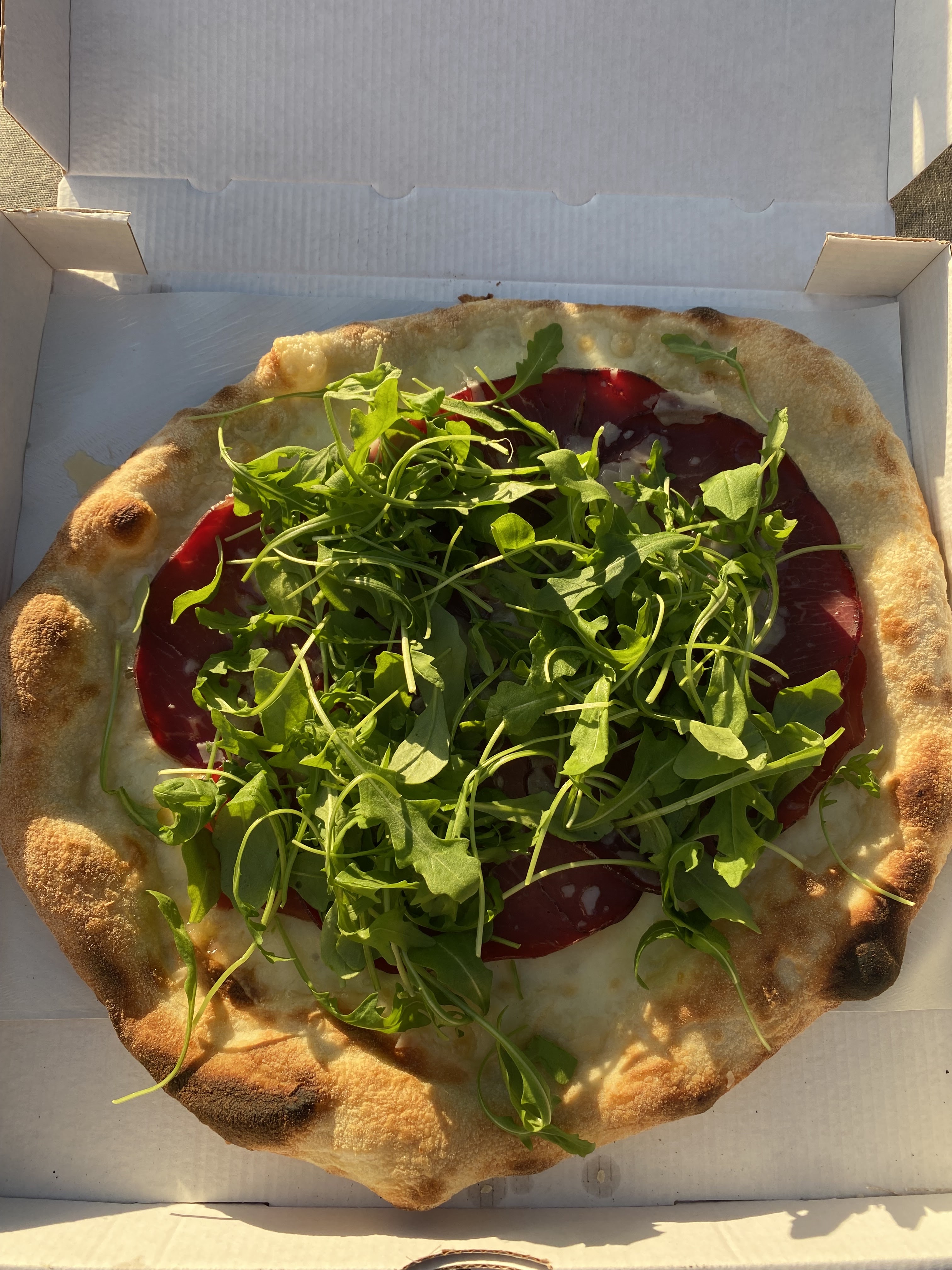Nous avons commandé des pizzas à emporter, covid-19 oblige. Les pizzas sont généreuses et savoureuses, et les 2 personnes qui étaient là vraiment très accueillantes. Nous reviendrons 😊