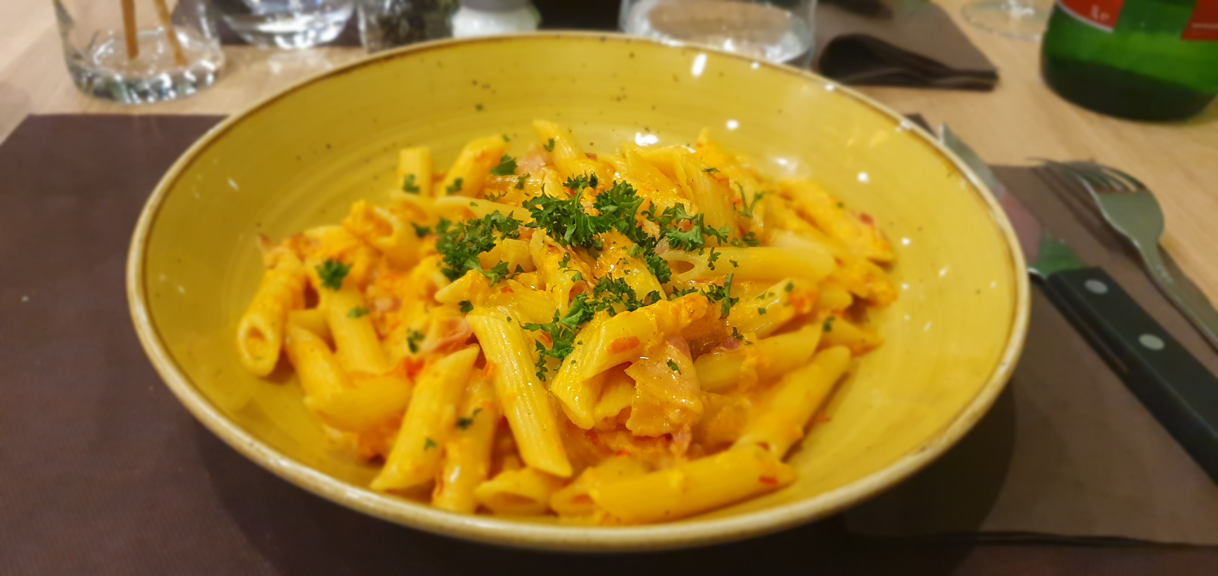 Très beau restaurant avec une belle décoration. Serveurs sympathiques et compétents. Grand choix de pâtes et pizzas. Personnellement j’ai pris les linguinis à la carbonara un vrai régal! Je recommande