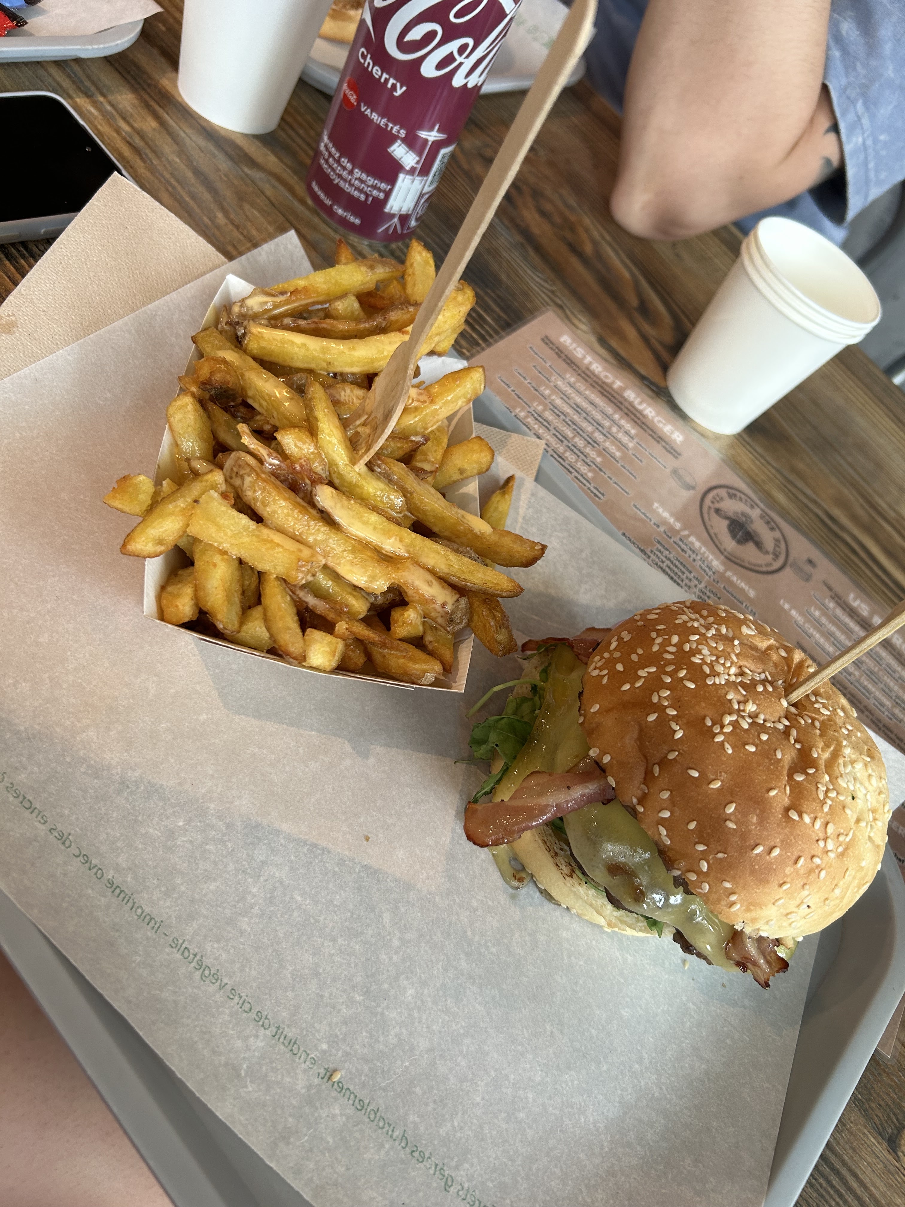 'les hamburgers sont délicieux, les frites sont bonnes, c'était la première fois et ça ne sera pas la dernière, j'adore