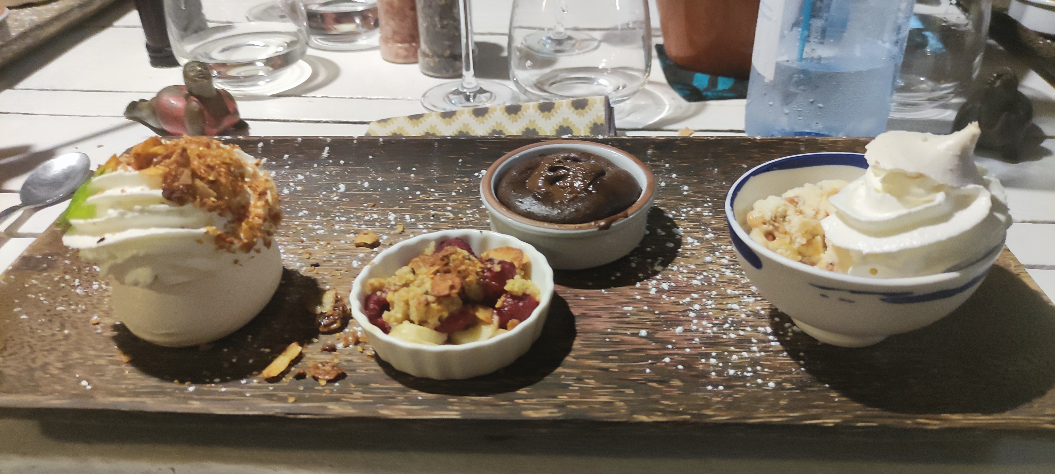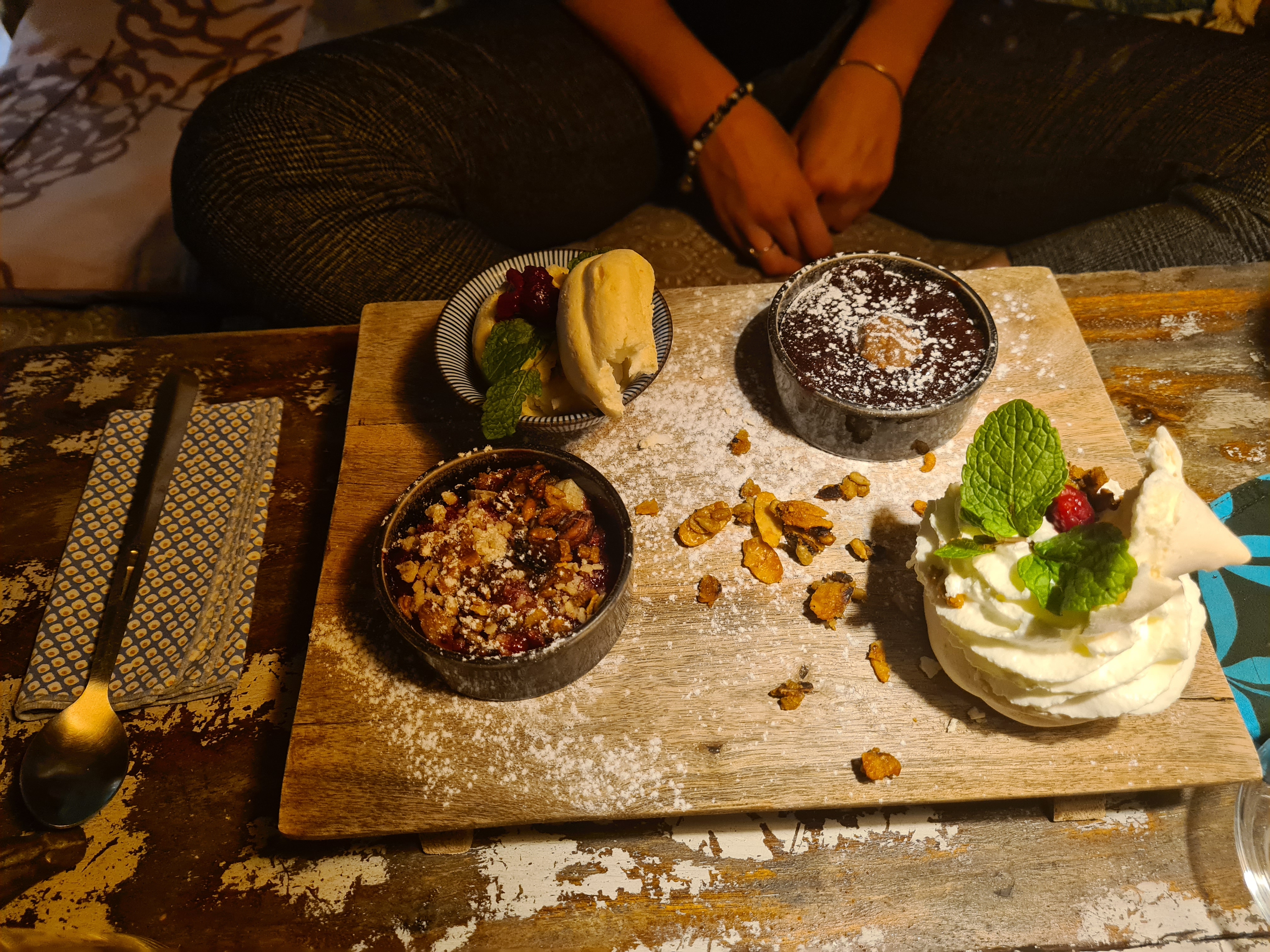 Repas délicieux avec des alliances de produits étonnants, bcp de goût, y compris dans la deco