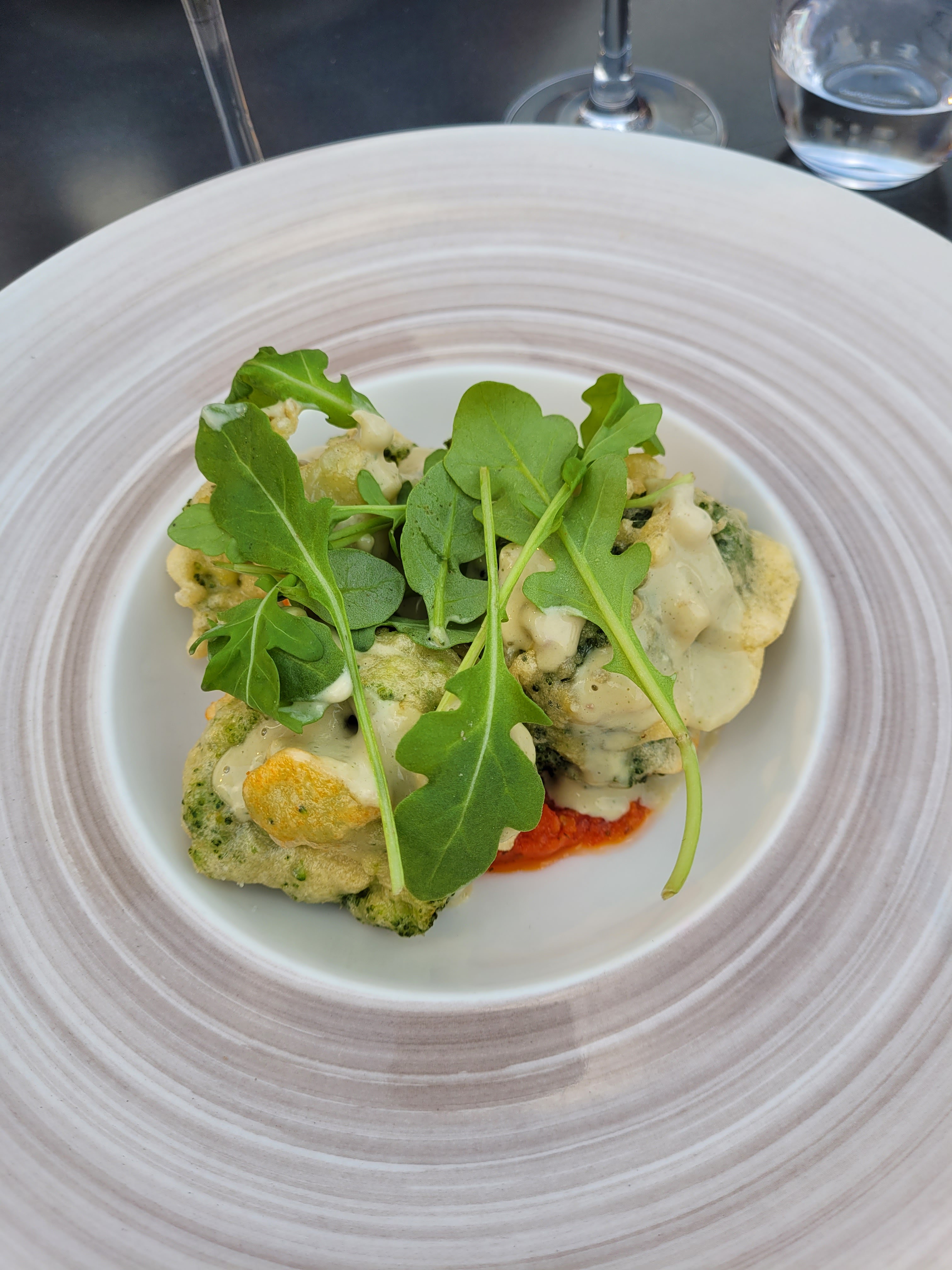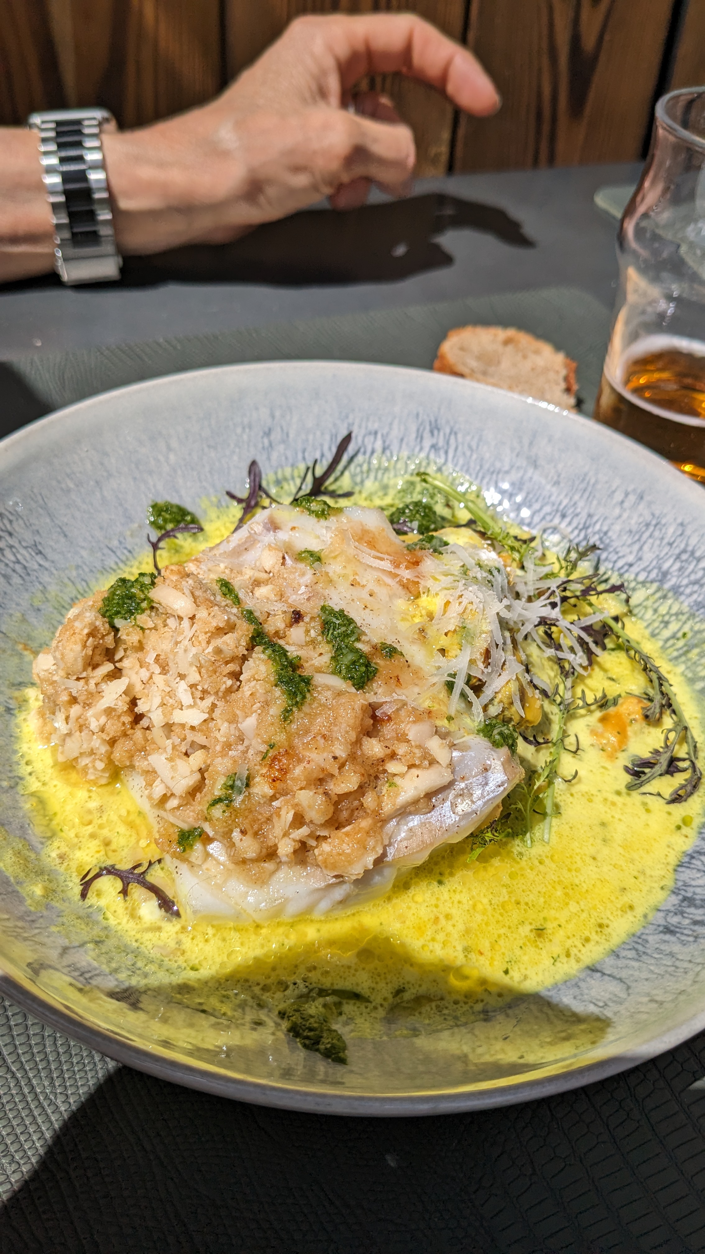 Malheureusement, nous avons été un peu déçus par la nourriture. La dorade était fade, avec de la peau mais pas très bien frite et les accompagnements aussi et en quelque sorte tout sans sophistication. Le poulet était très gras et le chou-fleur ressemblait également davantage à une cuisine fermière. L'entrée d'agneau n'était que tiède. Dommage. Nous avions de grandes attentes en raison des bonnes récessions. Le vin, un rosé, était excellent et le service très sympa. Peut-être que nous venons d'attraper une mauvaise journée de la part du chef.