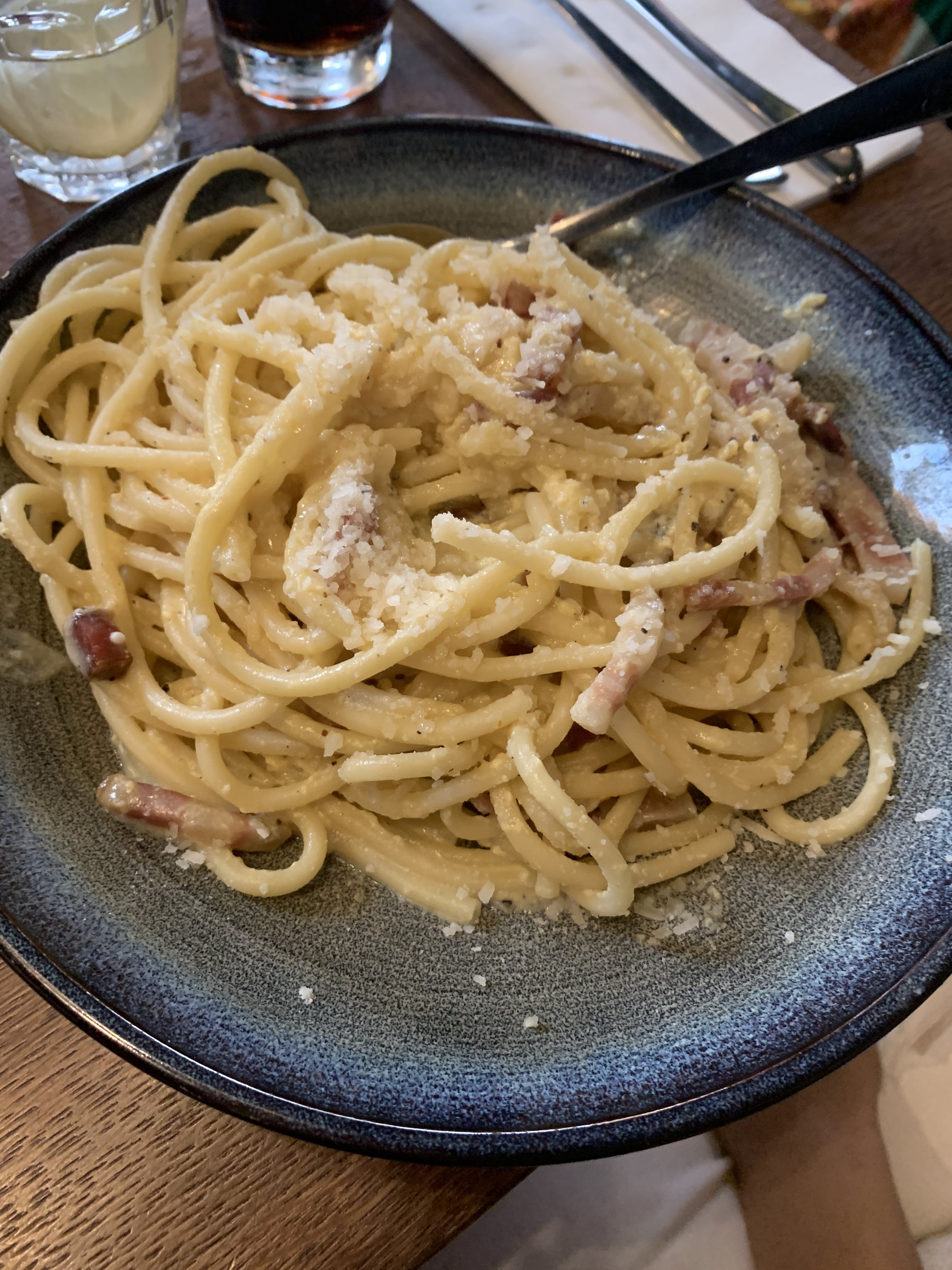 Restaurant italien un peu décevant. Le cadre est très beau mais assez bruyant, et les tables sont serrées et petites. Les plats sont bons mais pas exceptionnels, j'ai pris les pâtes à la truffe mais le goût était léger. Les pâtes avec les boulettes de viandes étaient accompagnées de fromage, ce qui n'était pas précisé sur la carte. Je n'y ai pas goûté les pizzas mais j'ai entendu dire qu'elles étaient bonnes