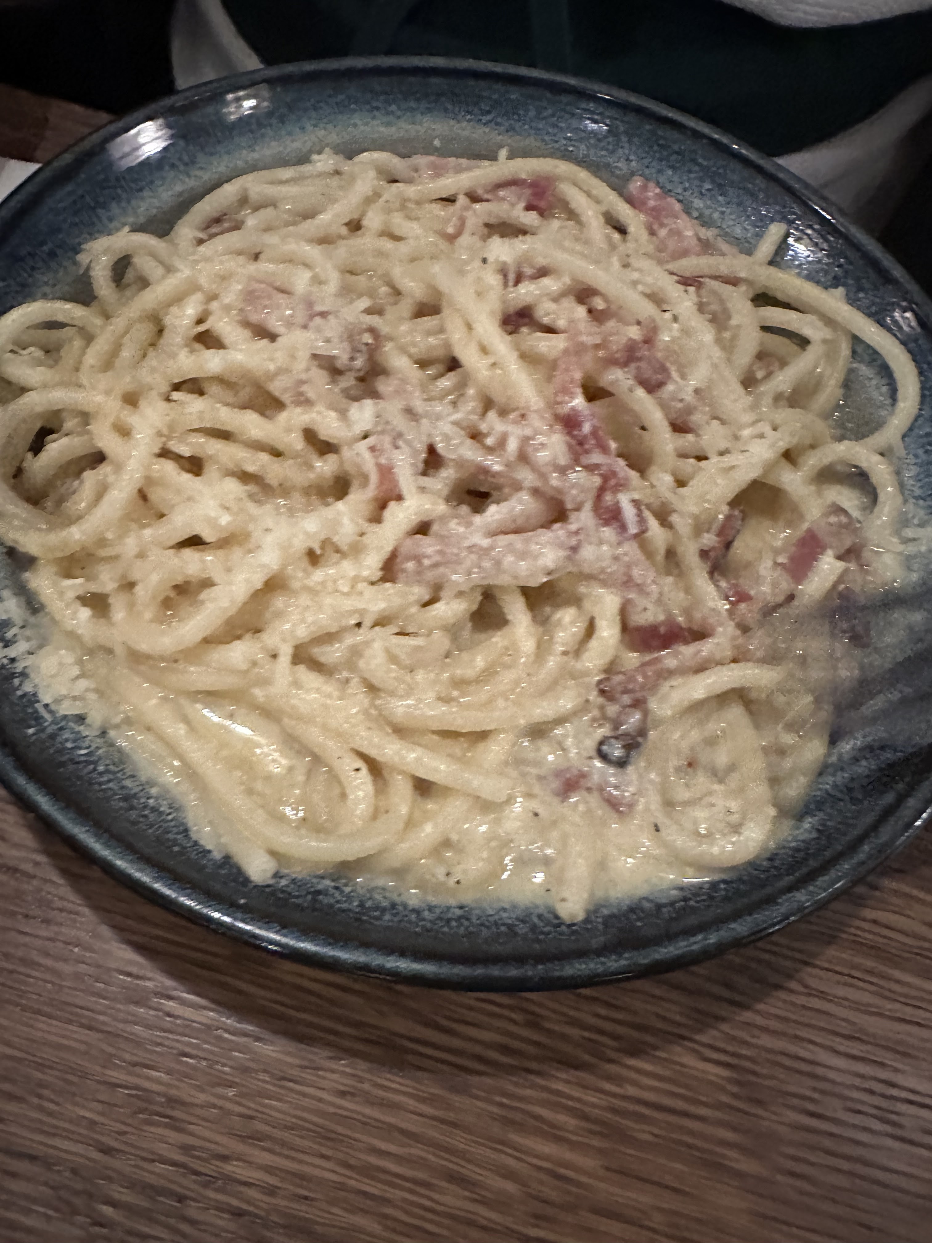 C'était mon restaurant italien préféré à Strasbourg, jusqu'à ce que ce ne soit plus le cas. Arrivé samedi soir, j'ai mis 15 minutes pour avoir les menus, mais nous ne nous sommes pas plaints, vu que le restaurant était plein et les serveurs tellement pressés, j'ai compris. Cependant, en entrée, j'ai commandé des arancini. Au bout de 10 minutes, j'ai été informé qu'il y avait un problème dans la cuisine avec les arancini. Ils ont donc dû le refaire et cela prendrait plus de temps. J'allais toujours bien jusqu'à présent. J'ai eu mes arancinis et ils semblaient toujours un peu trop brûlés pour être honnête, mais toujours corrects. Ensuite, nous avons commandé des pizzas, ce qui était absolument incroyable et jusqu'à présent, tout se passait bien, jusqu'à ce que je trouve des cheveux dans la pizza et que je doive les renvoyer. C'est la première fois que je renvoie un repas et je me sentais vraiment mal de faire ça dans mon restaurant préféré. On m'a proposé d'en acheter un nouveau, ce que j'ai accepté, mais il n'avait tout simplement pas le même goût, je suppose parce qu'il avait été fabriqué à la va-vite. La pizza était proposée sur l'addition, ce que j'apprécie mais dans l'ensemble, l'expérience a été un peu ratée.
