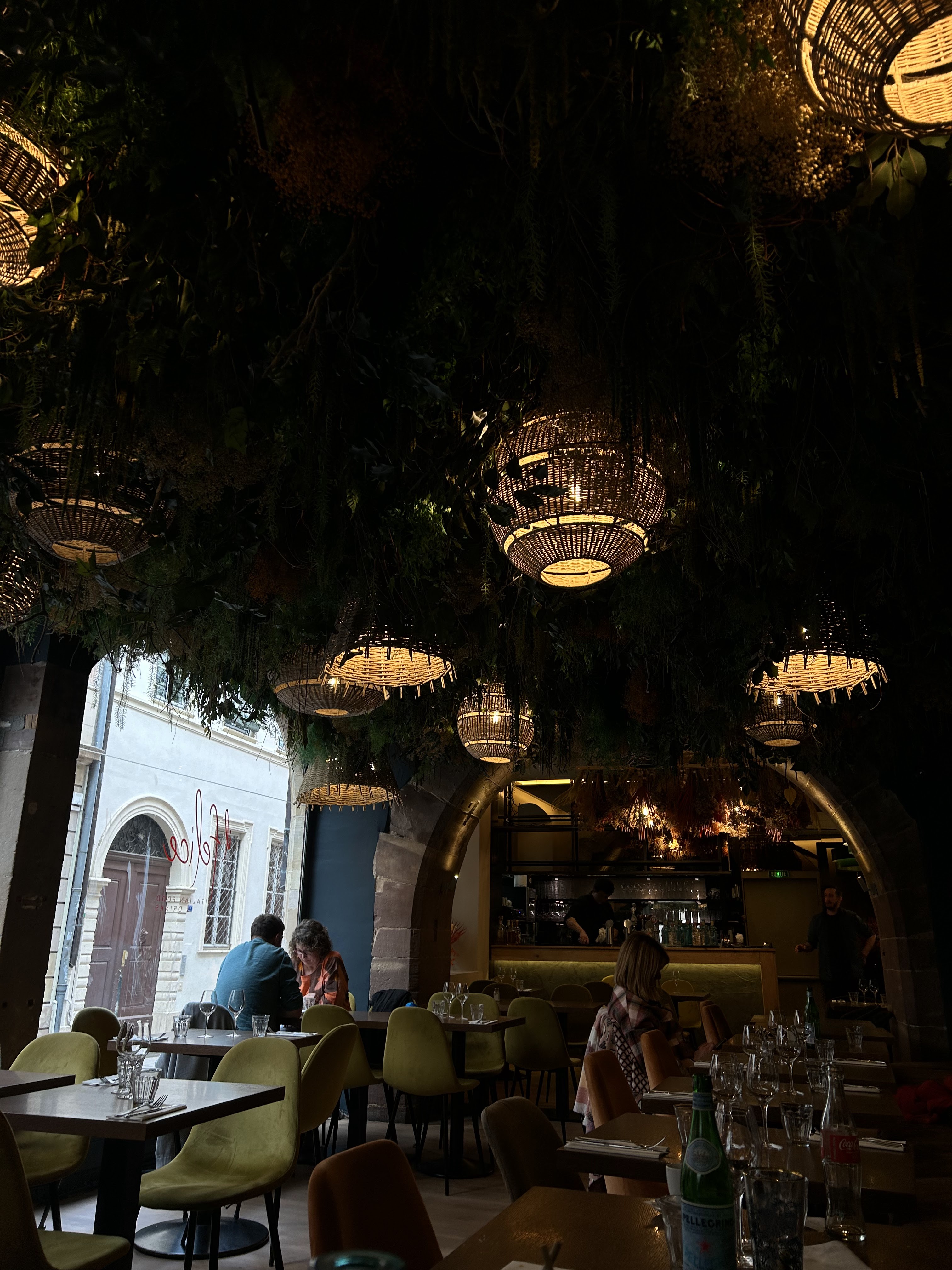 En plein centre de Strasbourg Restaurant Italien Personnel à l’accueil agréable pour nous placer Belle décoration au plafond (l’impression d’être dans une forêt tropicale) Pas trop de choix de vins rosés Une entrée de couteaux de mer dont la sauce est une vrai tuerie (a déguster absolument) Plats de résistances corrects sans plus Nous avons été placés dans la salle en face de l’entrée du restaurant et les rideaux n’étaient pas fermés ce qui a occasionné une forte gêne à cause du froid et nous avons été plusieurs tables à demander la fermeture de la porte pour ne pas avoir trop froid!!(quelques fois le personnel était agacé) Desserts moyens
