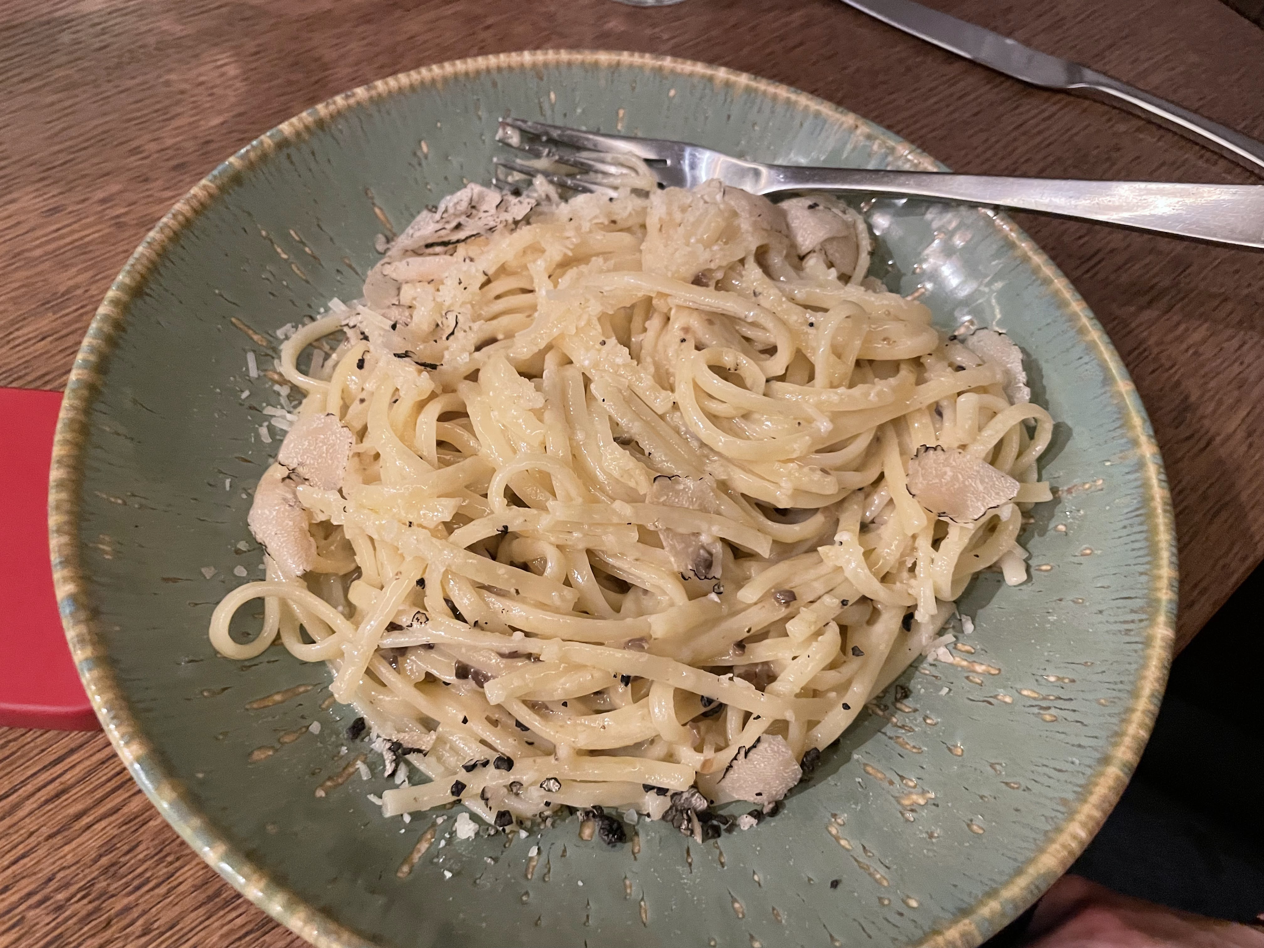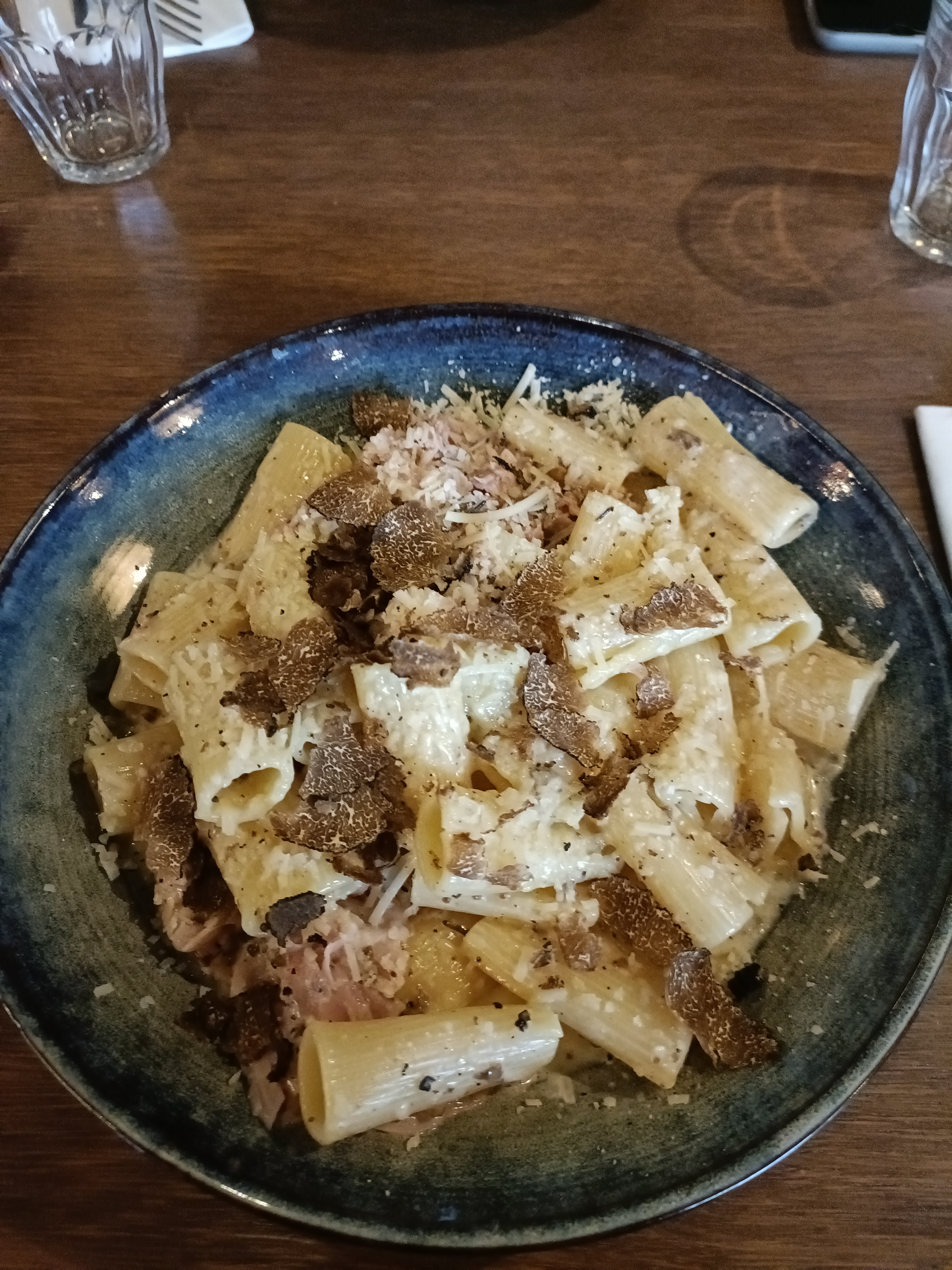 Je suis une grande fan de toutes les pâtes aux truffes, alors bien sûr, j'ai trouvé ce restaurant génial ! La pizza était également bonne, la croûte était délicieuse. Je n’ai pas pris de photo mais nous avons commandé la salade Caprese en entrée, mais ce n’était pas l’authentique salade caprese à laquelle je m’attendais donc je n’ai pas beaucoup apprécié ça. Beau restaurant et bonne nourriture. Je le recommande si vous recherchez de la cuisine italienne!