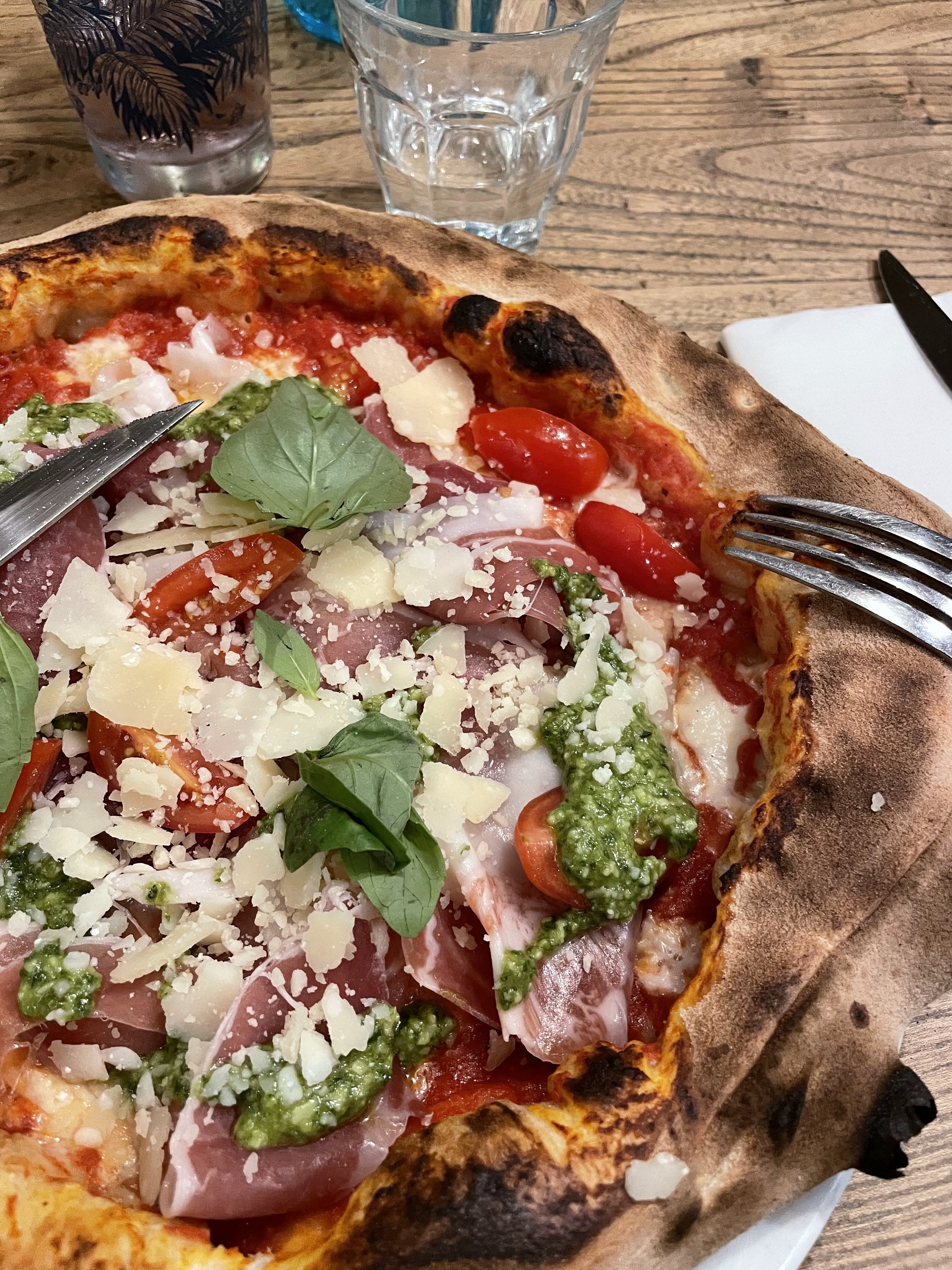 Vraiment une bonne adresse pour les pizzas italiennes. J’étais totalement rassasié. La pâte est excellente, la buffala très crémeuse et le jambon est de qualité. Le service est correcte et agréable même si je trouve que le client ne devrait pas autant ressentir la rigueur de l’organisation…