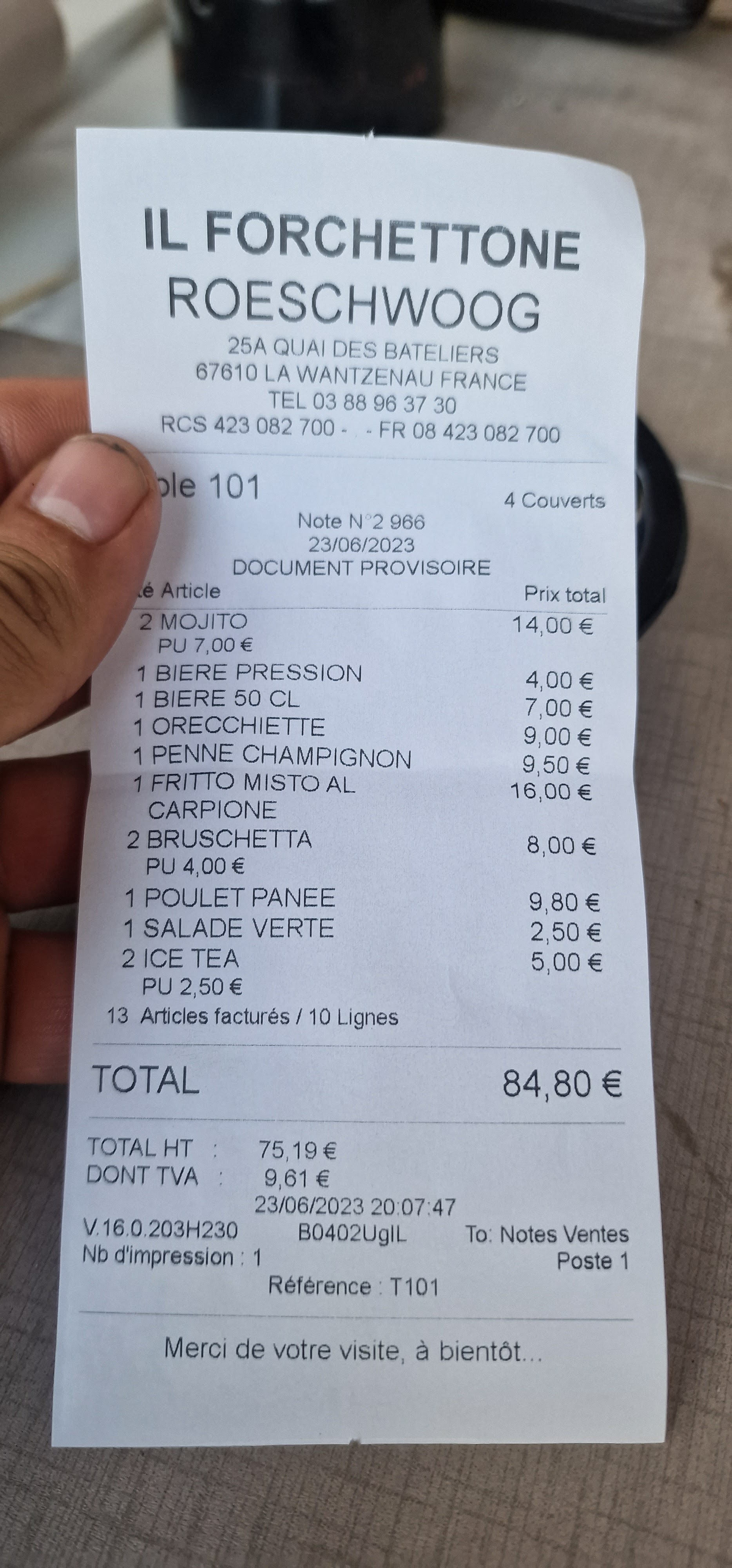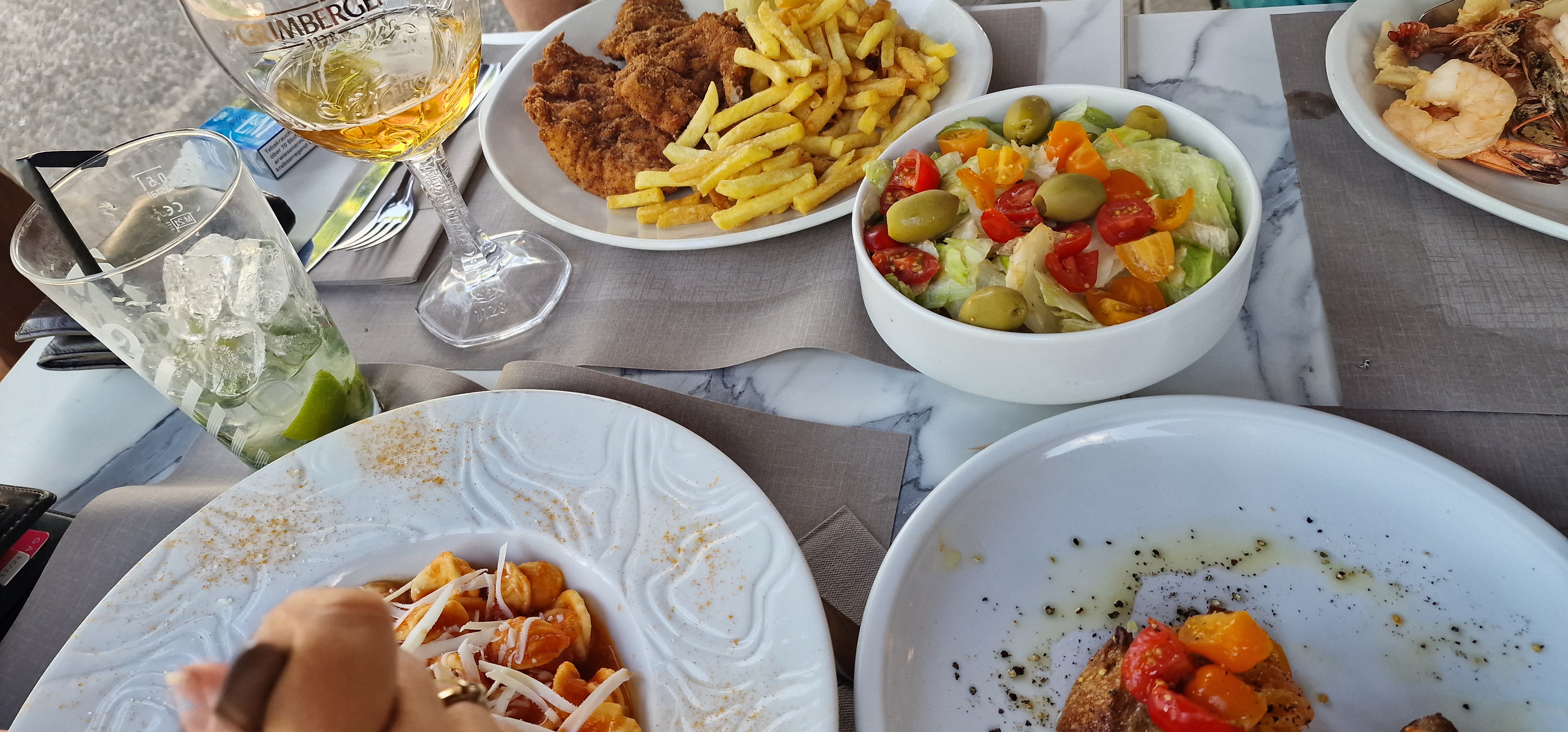 La nourriture n'était pas très bonne, les pâtes étaient encore très dures, puis pour la bruschetta 6 euros et ça pour 2 tranches de pain, les chips n'étaient pas comestibles, elles étaient tellement dures, après plaintes, rien n'est revenu nulle part.