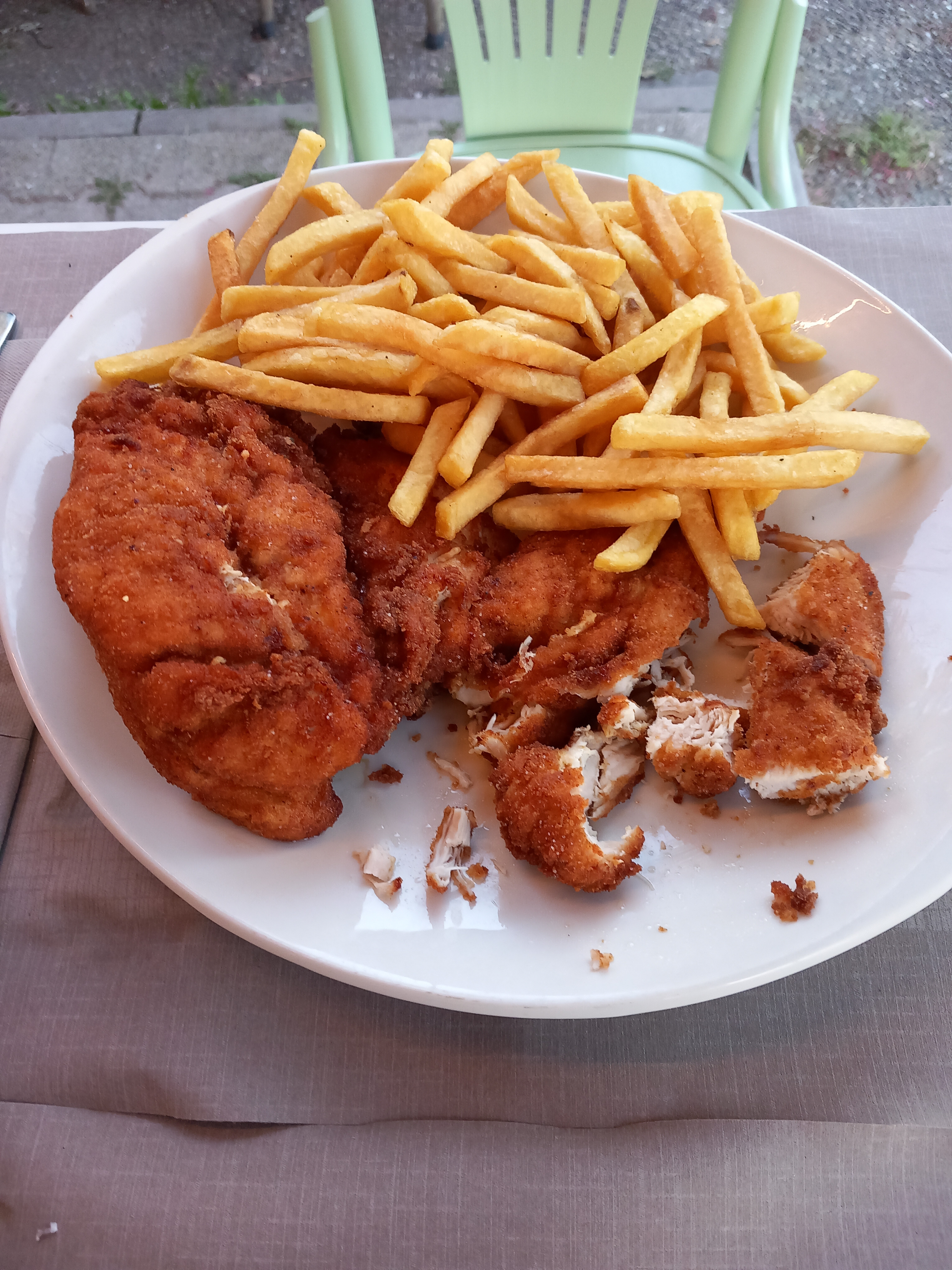 Alors j'ai mis quelques étoiles pour le serveur, le seul à parler français qui a été adorable, le reste du personnel parle italien, quand le patron n est pas là les serveuses dansent ! Il y avait 1 seule qui parlait français mais elle ne vient pas en terrasse.... je ne peut pas dire que la qualité de la viande n'est pas au rdv mais j'ai demandé saignant et j'ai eu une semelle ! Je me passe de commentaires pour les frites, même mon fils les a laissé ! Plus de menu enfants basta cosi comme dirait les italiens que j aime bien mais en Italie 😁! On reste dans un camping alors au minimum un menu cheap on peut pas faire du gastronomique italien nonne possibile ! Bref à quand le retour aux vraies valeurs du camping..... ...