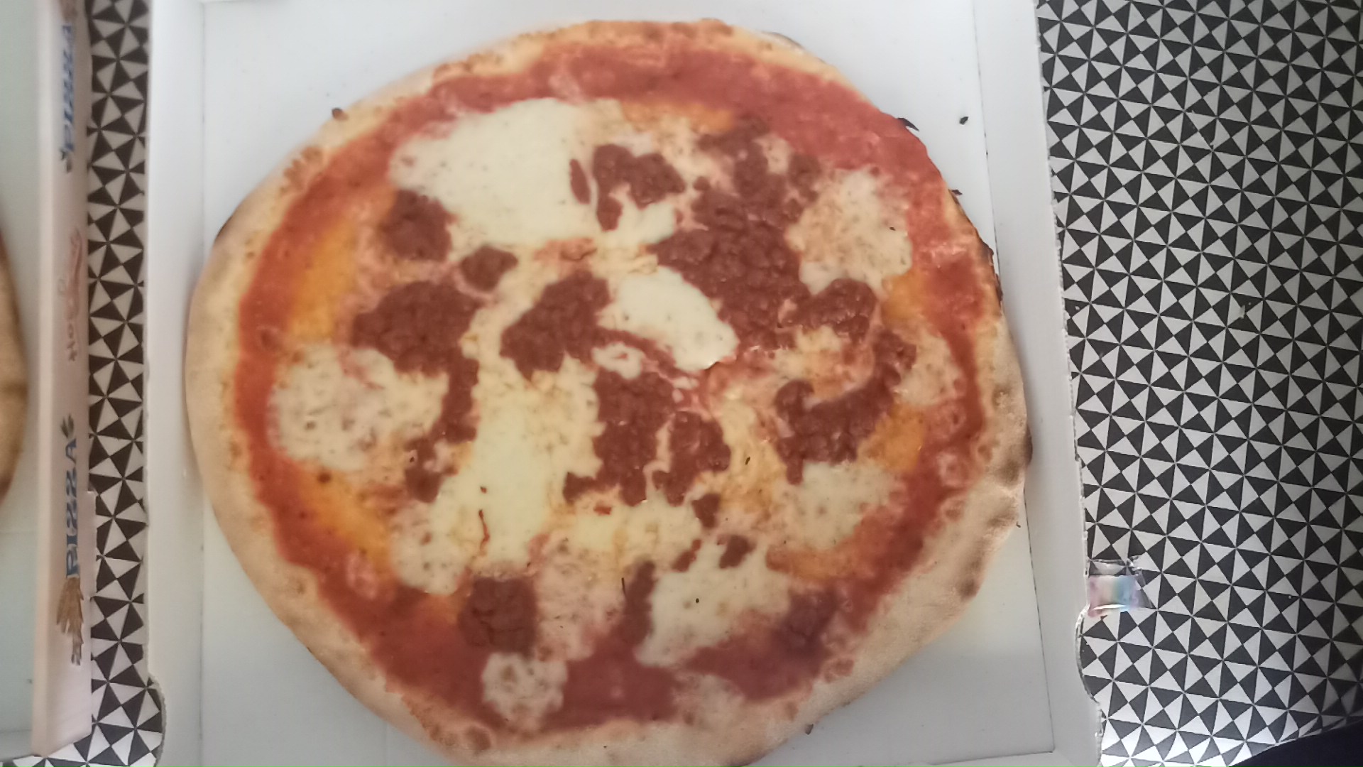 Pizza del Re prise en emporté. Belle découverte, pâtes à pizza et pâtes faites maison. Pizza généreuse pour deux personnes avec un petit appétit. Et avec une pâte très bonne et très bien cuite, le tout servie en 4min top chrono !