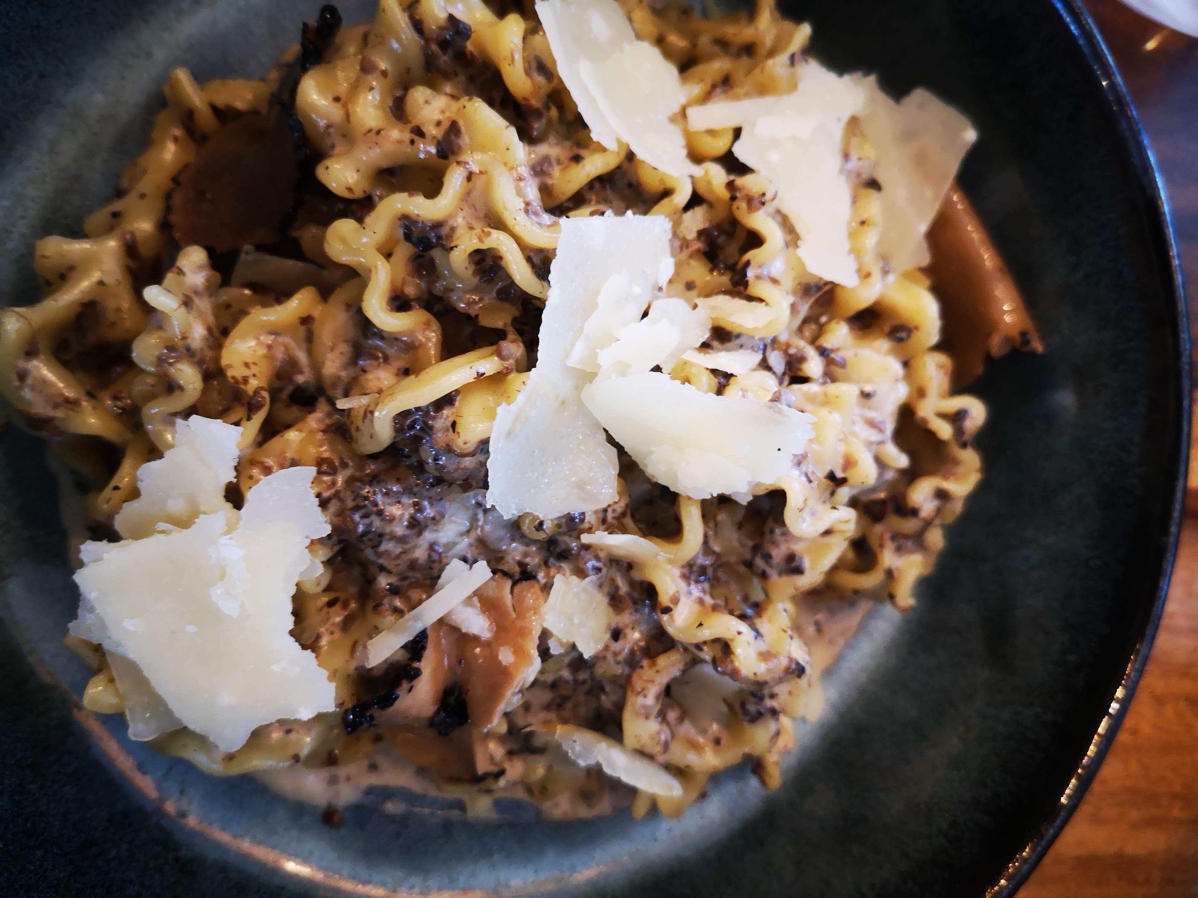La nourriture était bonne. Les pâtes aux truffes étaient bien équilibrées et le ragoût d'agneau avait un délicieux goût de dîner en famille fait maison.