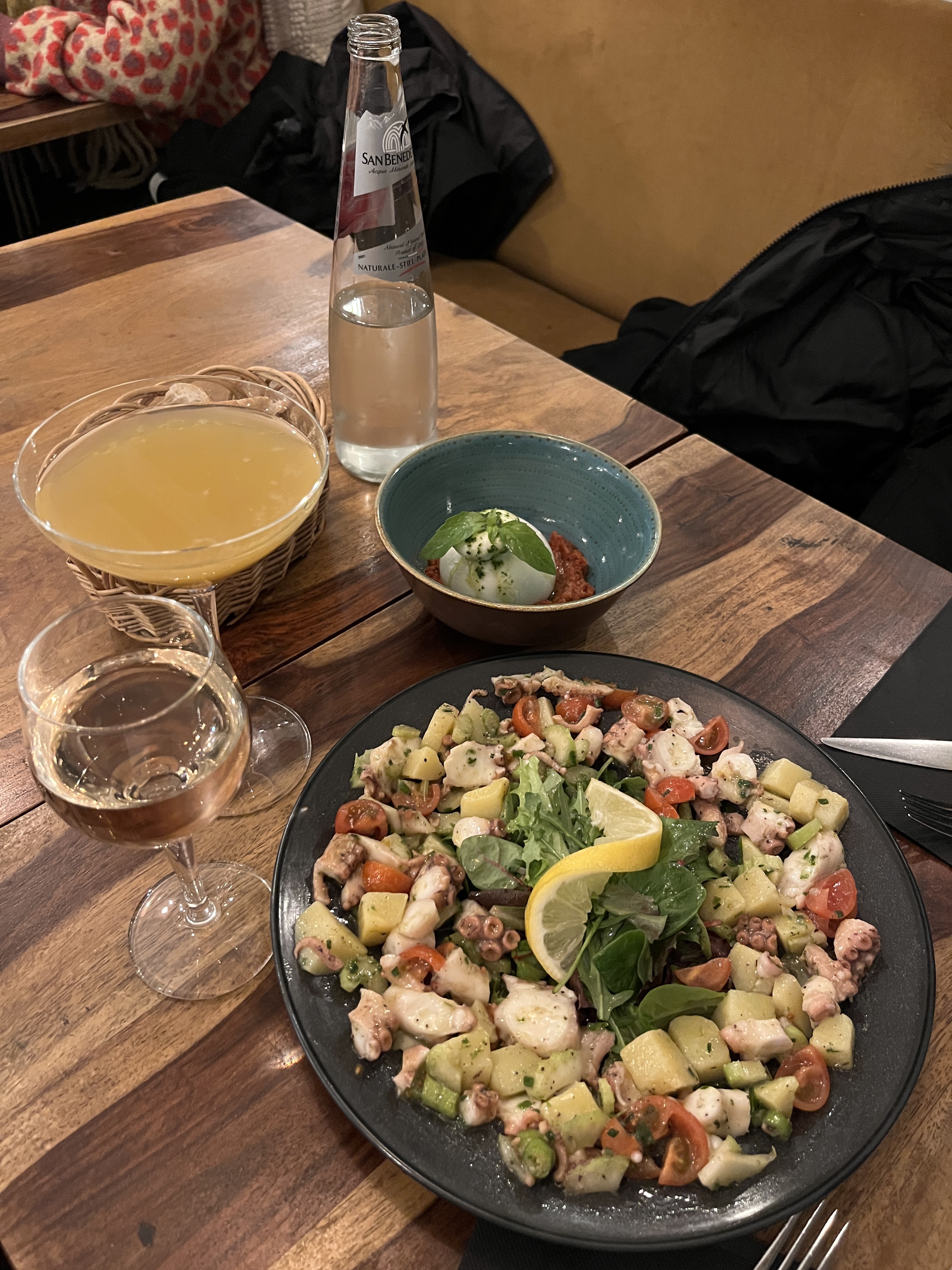 Le menu du midi est parfait pour un déjeuner. 3 ou 4 choix d’entrées, de plats et de desserts : tout est frais, bon. Et puis le soir, l’ambiance se fait plus tamisée, on se fait servir deux spritz avec une belle assiette d’antipasti, suivi d’un bon plat de pâtes, et on se croirait en Italie.