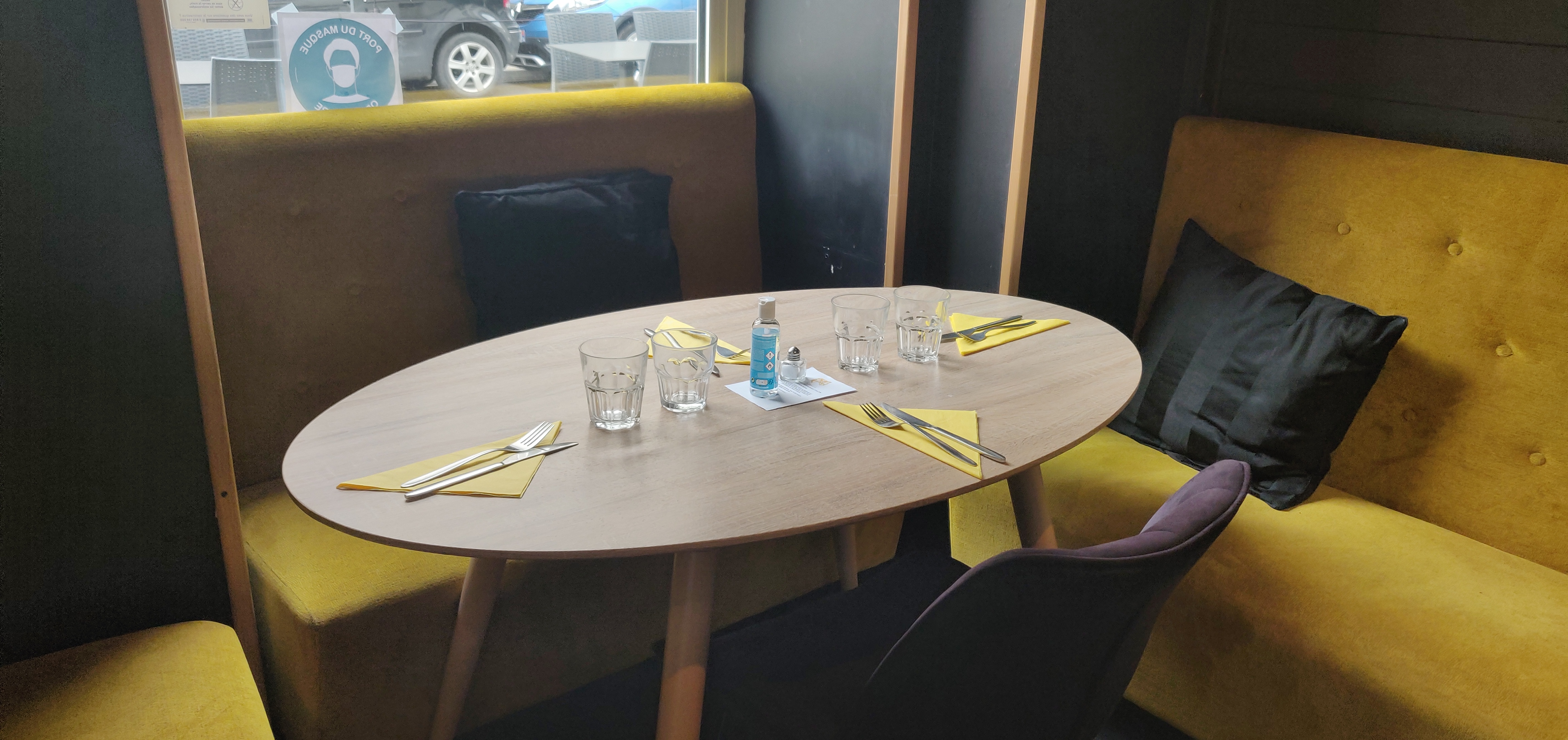 Très à l’étroit, collé les uns aux autres. Mais surtout, les portions ne sont pas les mêmes pour tout le monde, j’ai eu une part de lasagne coupée, dans une assiette, et une autre personne d’une autre table a eu une lasagne dans un joli plat blanc, qui faisait 3 fois ma portion... je ne comprends pas, personnel méprisant ? Surement... c’est dommage car la nourriture est bonne !