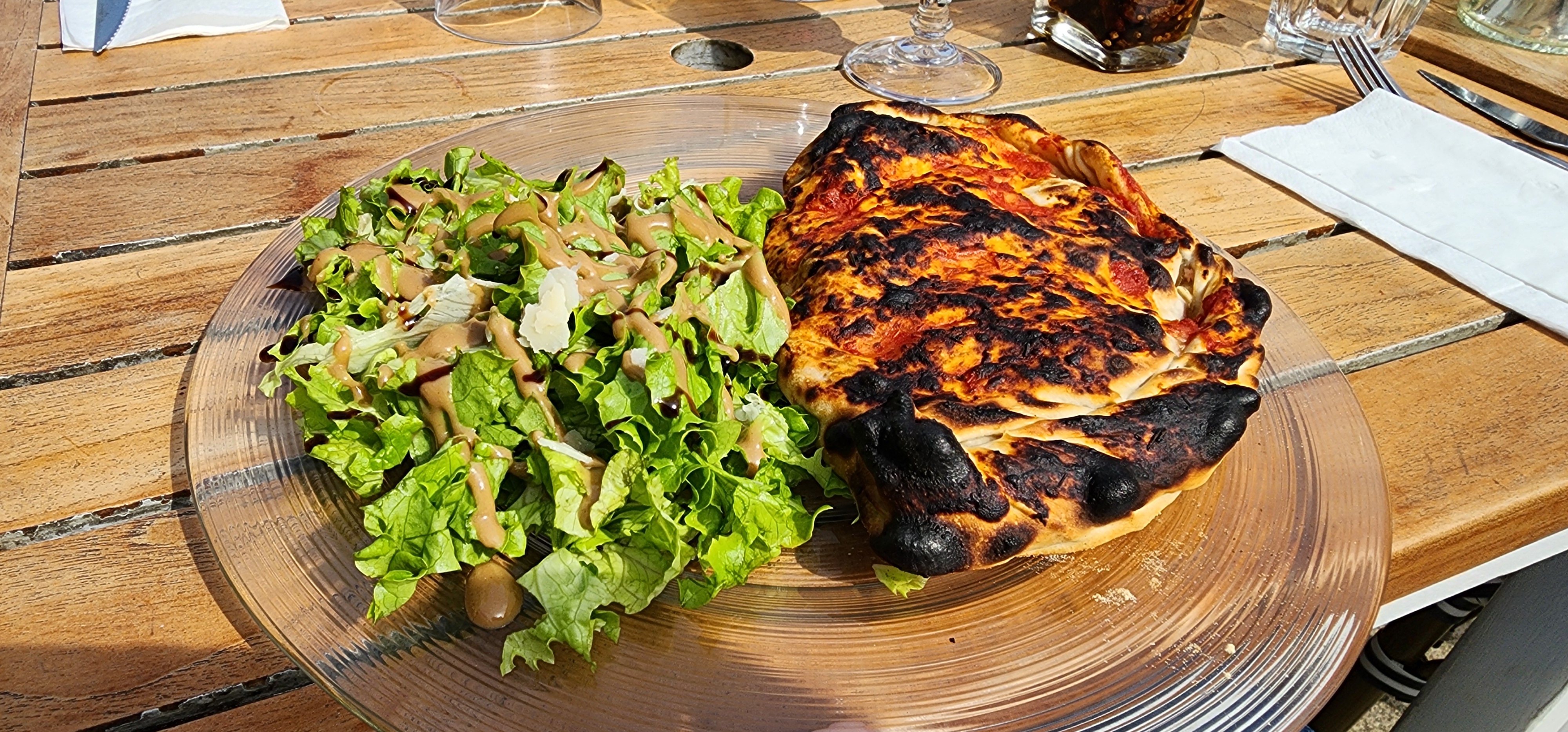 Puisque toutes les autres adresses aux alentours étaient fermées, on a pu s'arrêter dans cette pizzeria ce dernier mercredi de la pleine saison. Le monde attire le monde, à 14h encore la terrasse était pleine. Bon et rapide service, très bonnes pizzas et salades. Tarifs pas trop gonflés pour la localisation. 1 étoile en moins pour le manque de choix de vins au verre et en bières pression qui a au moins eu le mérite d'être rafraîchissante. Merci de l'accueil.