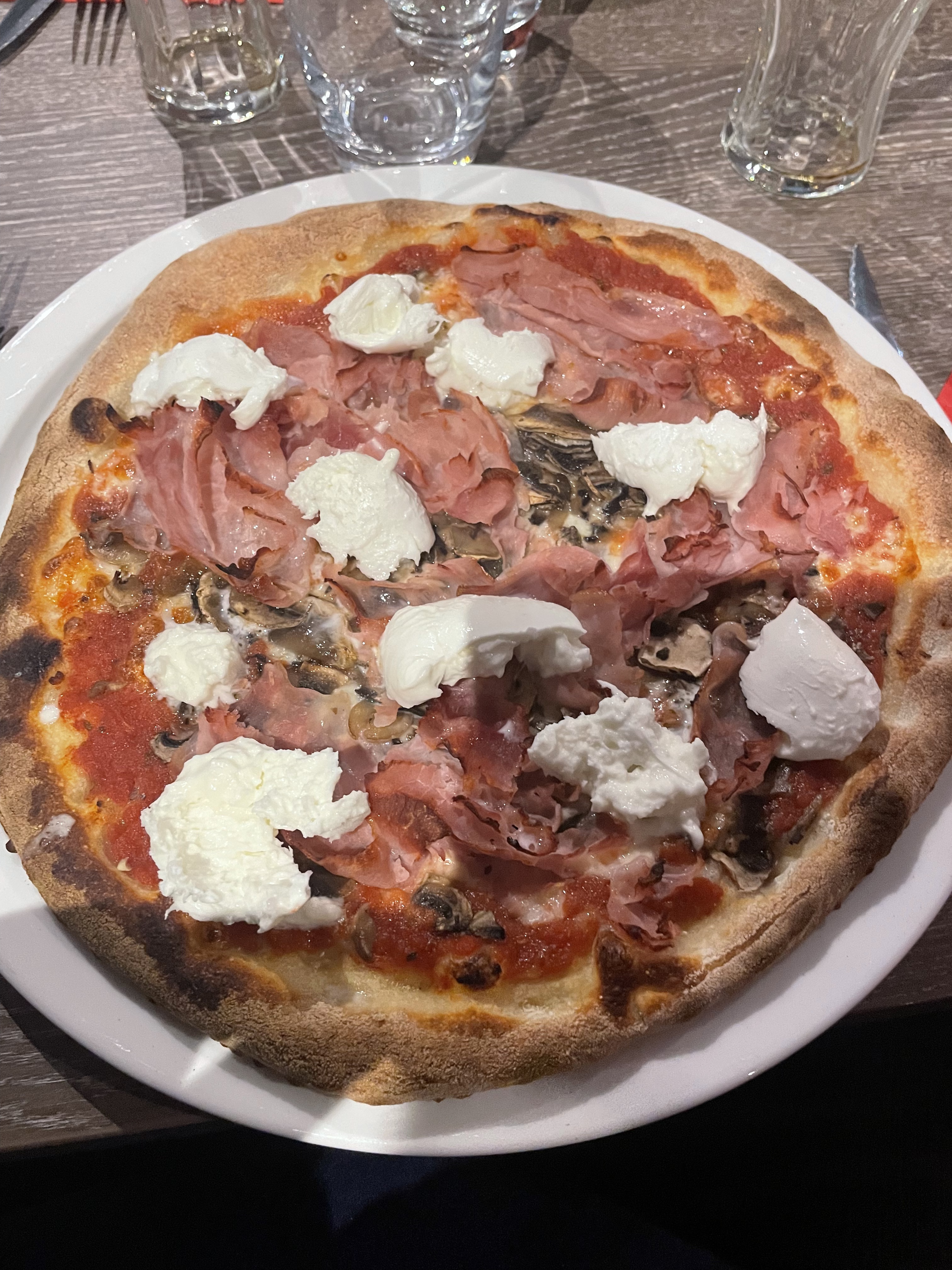 Pizza excellente un peut trop cuite ! plats italien au top super accueil et personnel très agréable au top !