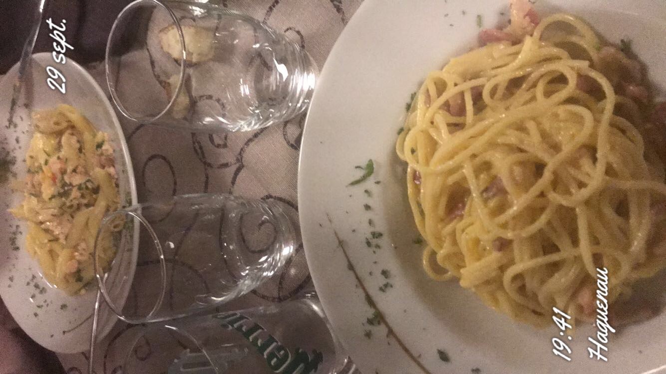 Très bon restaurant italien, le service est très rapide (10-15 mins pour 2 plats de pâtes) Leurs pizza sont excellentes, je précise aussi car beaucoup de restaurant ce proclamant restaurant italien servent des pâtes carbonata proposant de la sauce type crème fraîche ?!alors qu’ici non la sauce de leur pâte carbonara sont des mélanges d’œufs (donc la recette original italienne des pâtes carbonata) Donc c’est un très bon point. Les desserts sont fait maison et très bon.