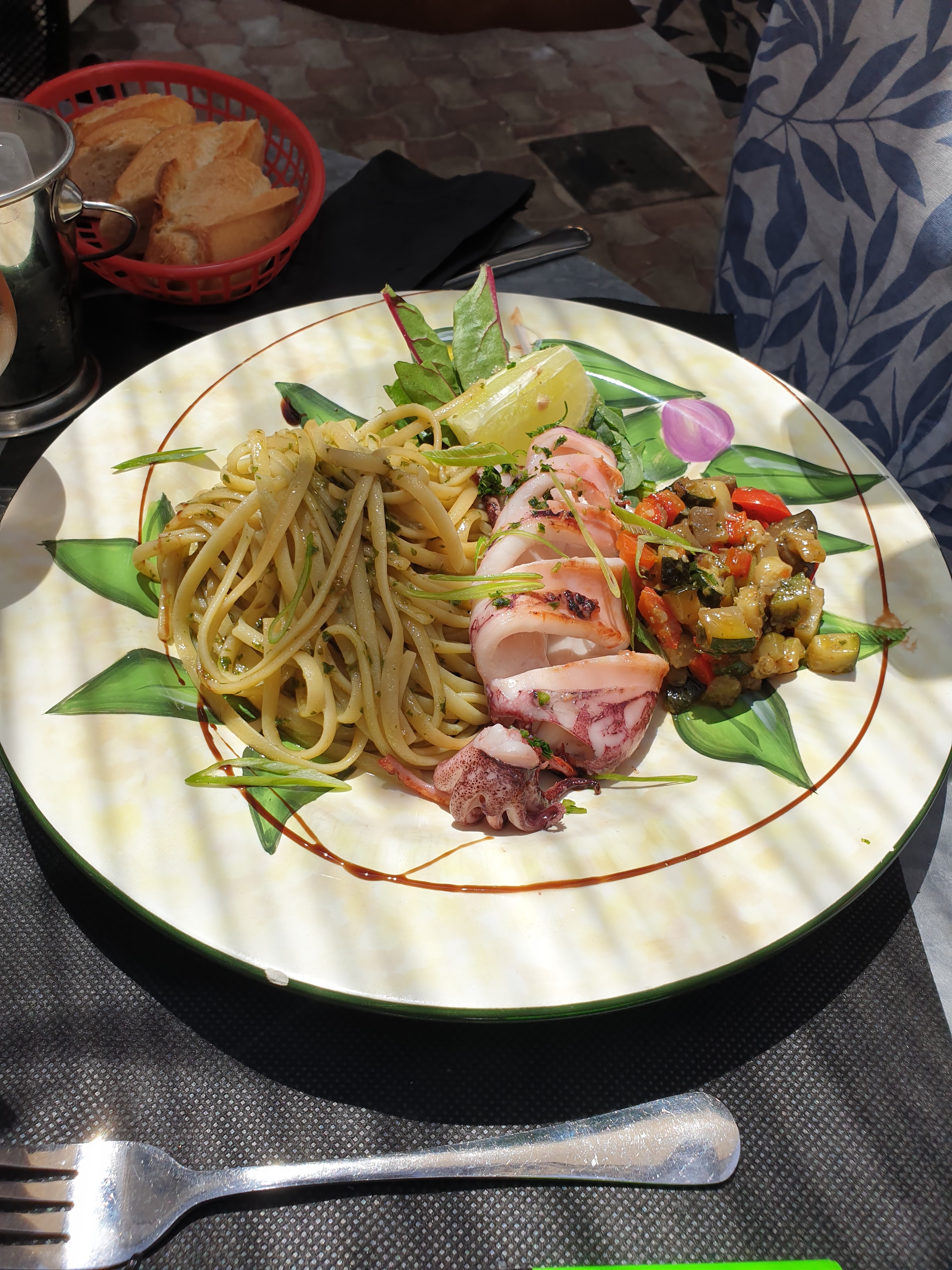 Excellent moment passé pour déjeuner. Malgré un mistral très fort,nous avons déjeuné dans le patio. Nous étions à l'abri et nous avons dégusté des mets Excellents. J'ai pris du poulpe avec des linguinis. Un régal. A très vite