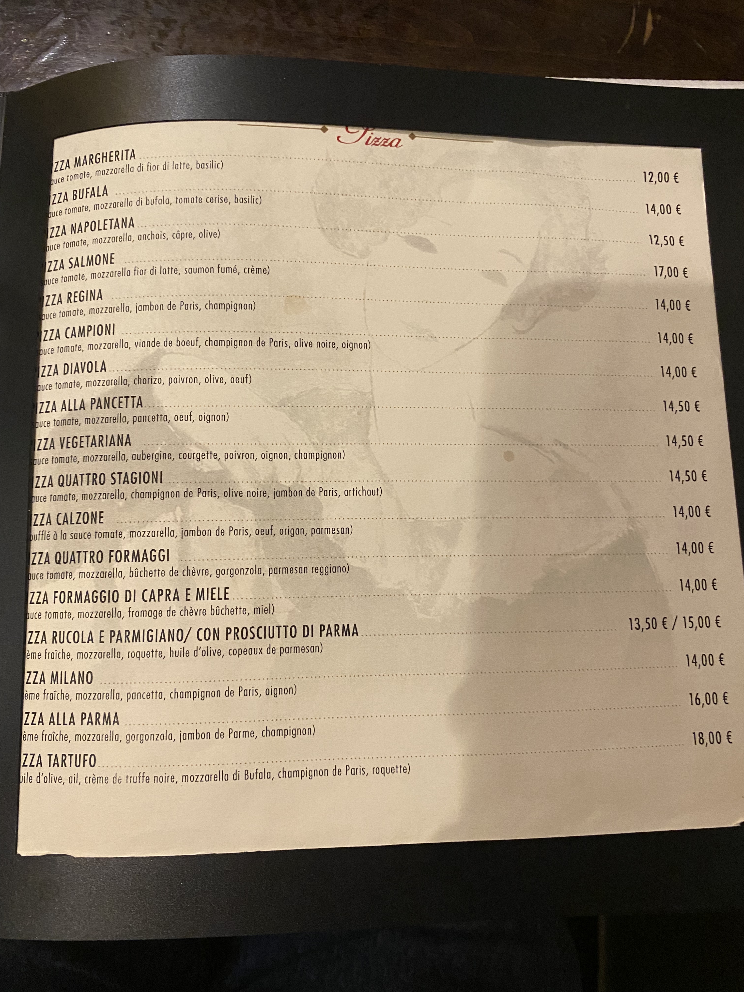 Une belle soirée dans ce petit restaurant à la décoration typique des pizzerias italiennes, service chaleureux et pizzas délicieuses (et copieuses)! Petite suggestion d’amélioration : la carte des vins semble incomplète dans ses informations liées aux bouteilles proposées, plus de détails seraient les bienvenus.