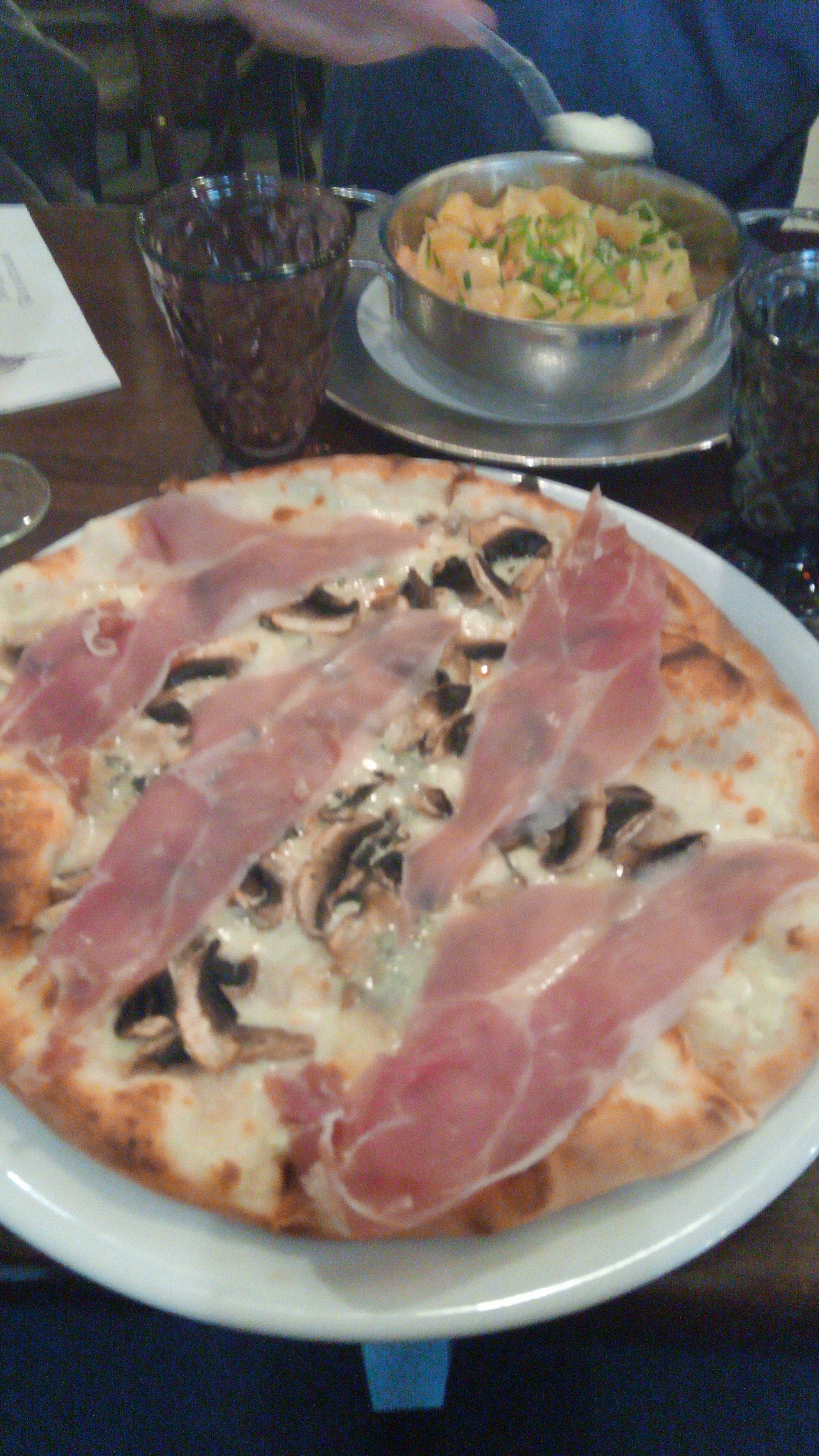 Accueil très chaleureux, vraiment agréable. Mais la pizza est pleine d’eau (peut-être que la sauce tomate n’était pas réduite.) su coup la pâte toute mouillée. Dommage.