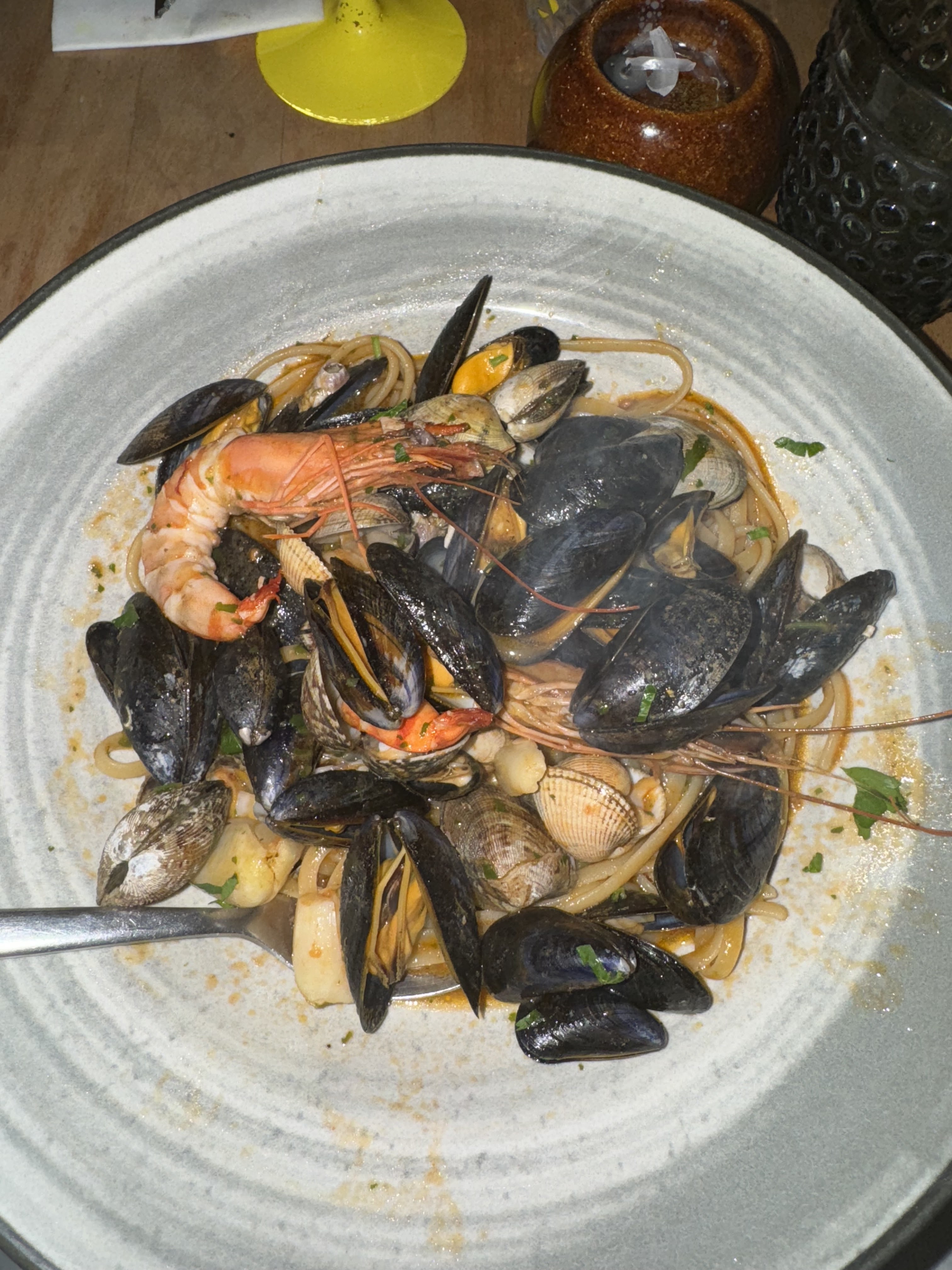Cuisine délicieuse! Les linguine aux fruits de mer sont exceptionnelles! Je recommande fortement en attendant d’y retourner!