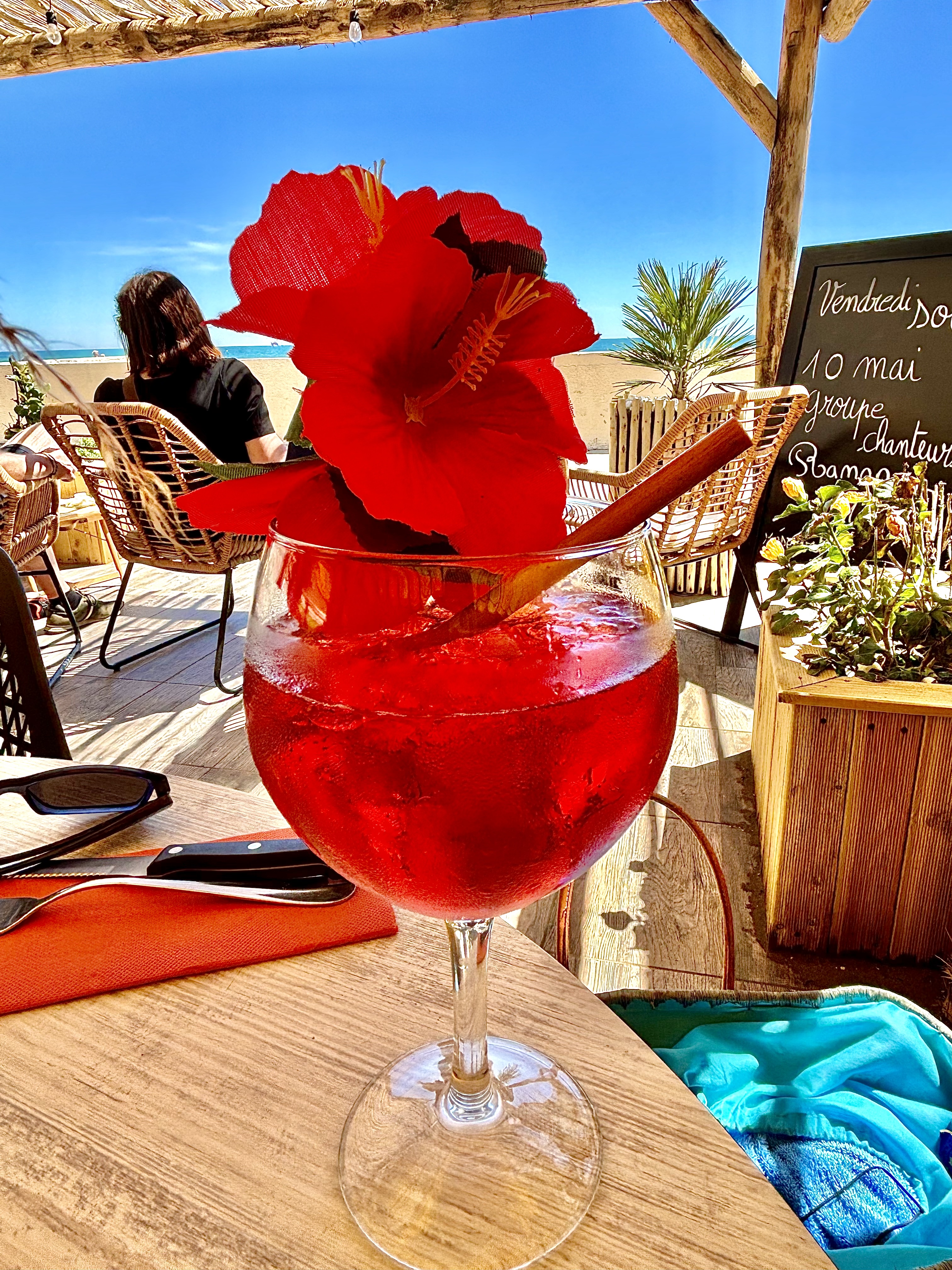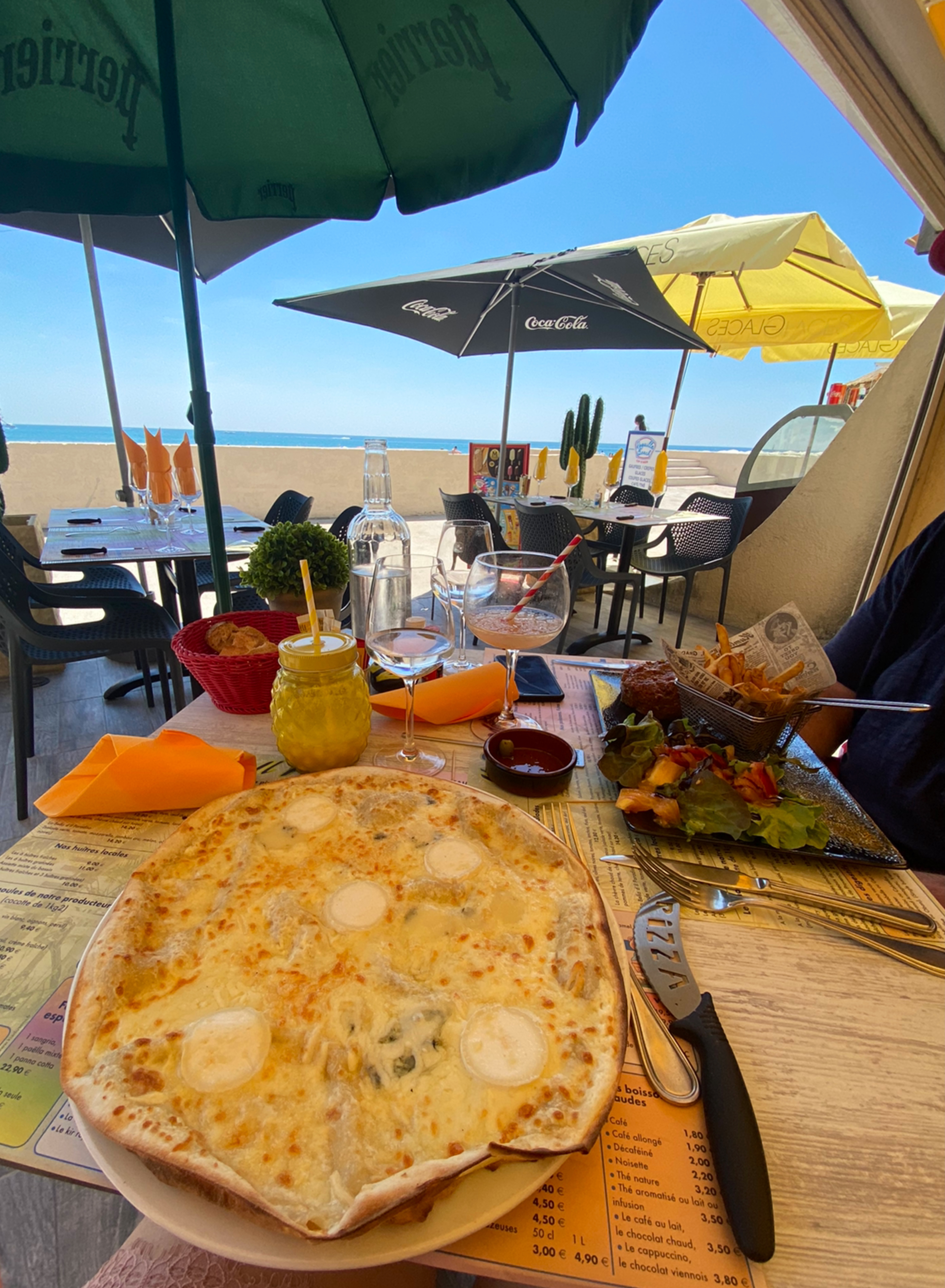 Arrivés à 12h30 ce samedi 11 mai, nous avons été rapidement installés alors que nous n’avions pas réservé et rapidement servis Le personnel était sympathique et attentif à nous Le cocktail Paradiso bu en apéritif, à base de rhum, prosecco, hibiscus, et pêche était à la fois très original, bon, généreux et pas très cher (moins de 10 €) Les pinsas romanas au saumon, sortes de focaccias, que nous nous avons prises étaient à la fois généreuses, goûteuses et délicieuses avec les nombreux produits frais dessus : saumon gravlax, buffala, petits morceaux de parmesan, roquette et tomates cerises. Leur prix n’était que de 18,50 € de mémoire avec une petite salade composée en accompagnement, 14,50 € une demi En plus, c’est tout neuf, notamment les toilettes et il y a un cadre sympa Au total, cocktail + plat + dessert + café + un verre de rosé pour 96 € soit 32 € par personne le tout au bord de la plage, c’est franchement très satisfaisant !