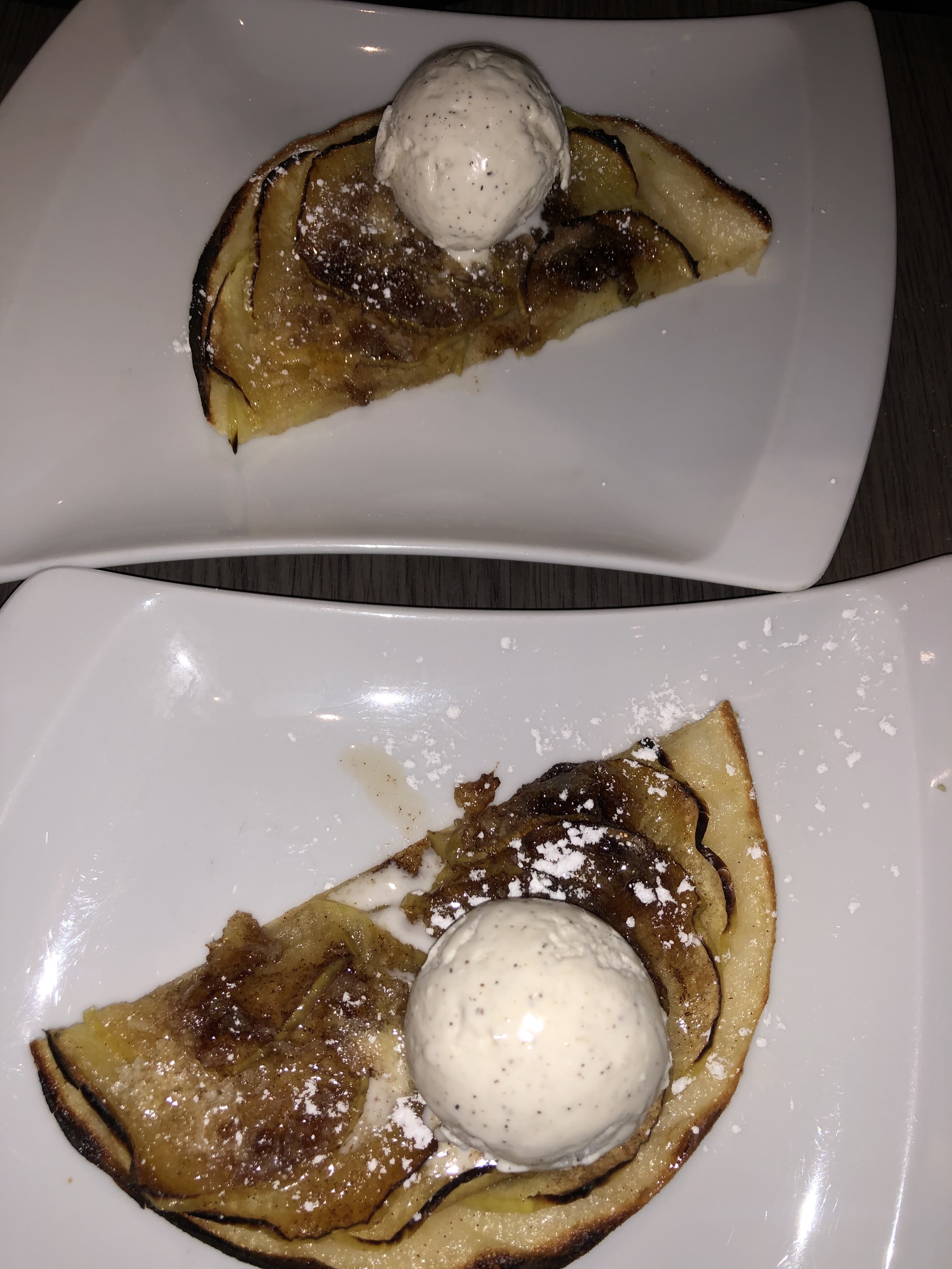 Avis un peu mitigé, cadre agreable, les pizzas sont bonnes (pour avoir goûté celle de mon amie) mais très déçue de mon plat -risotto gambas- trop citronné et trop salé je n'ai mangé que les gambas qui dit en passant ressemblaient plus à des crevettes ! Le patron m'a gentiment offert le dessert -une tarte fine aux pommes- malheureusement trop sèche et trop sucrée. Pour le peu que j'ai mangé la note était un peu trop...salée !