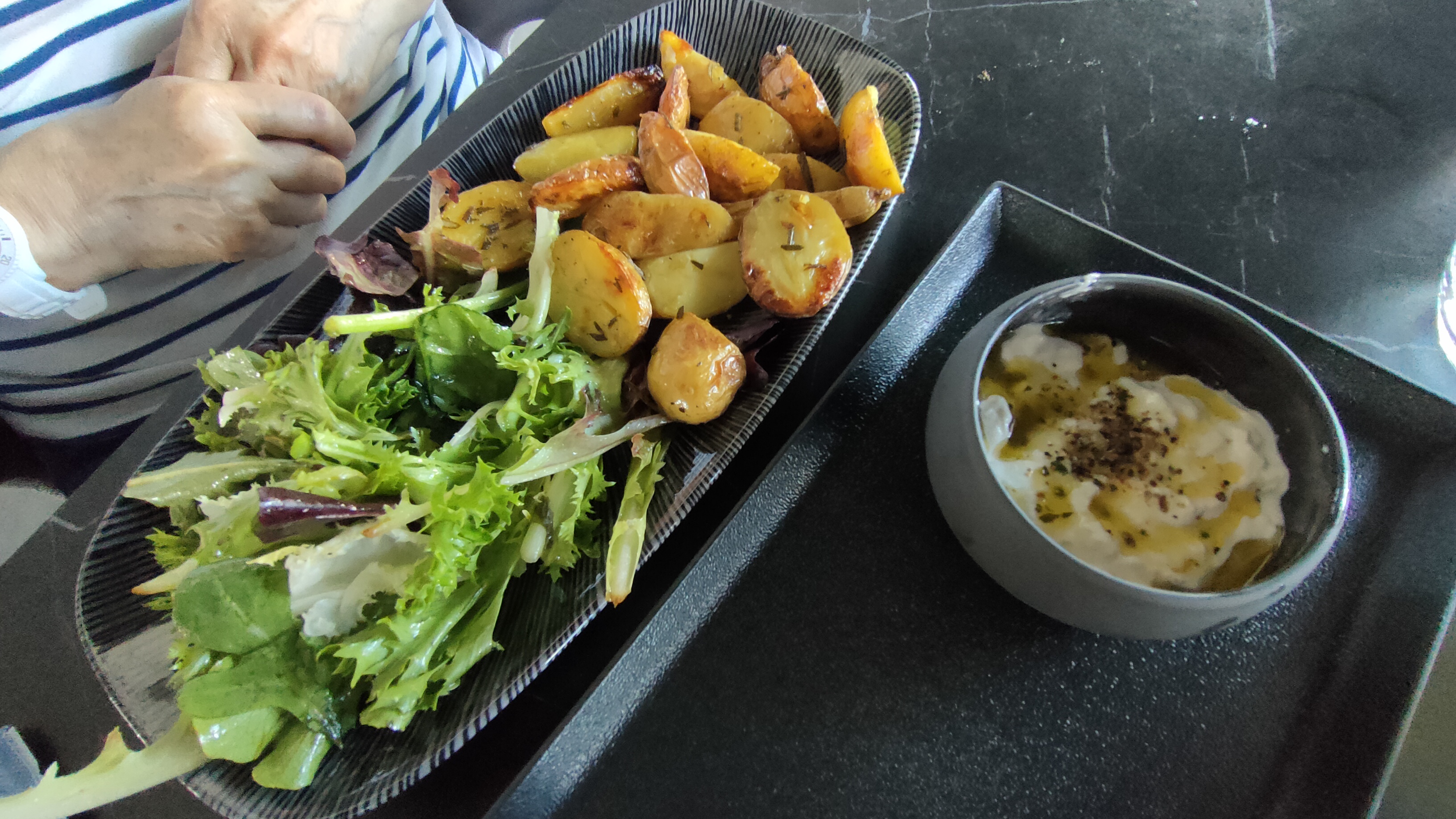 La première fois que nous étions ici. Parfait 👍🏻 ils étaient les bienvenus et bon service. Les plats étaient de bon goût, pas salés, c'est parfait pour moi. J'ai tellement apprécié. Je reviendrai y manger.