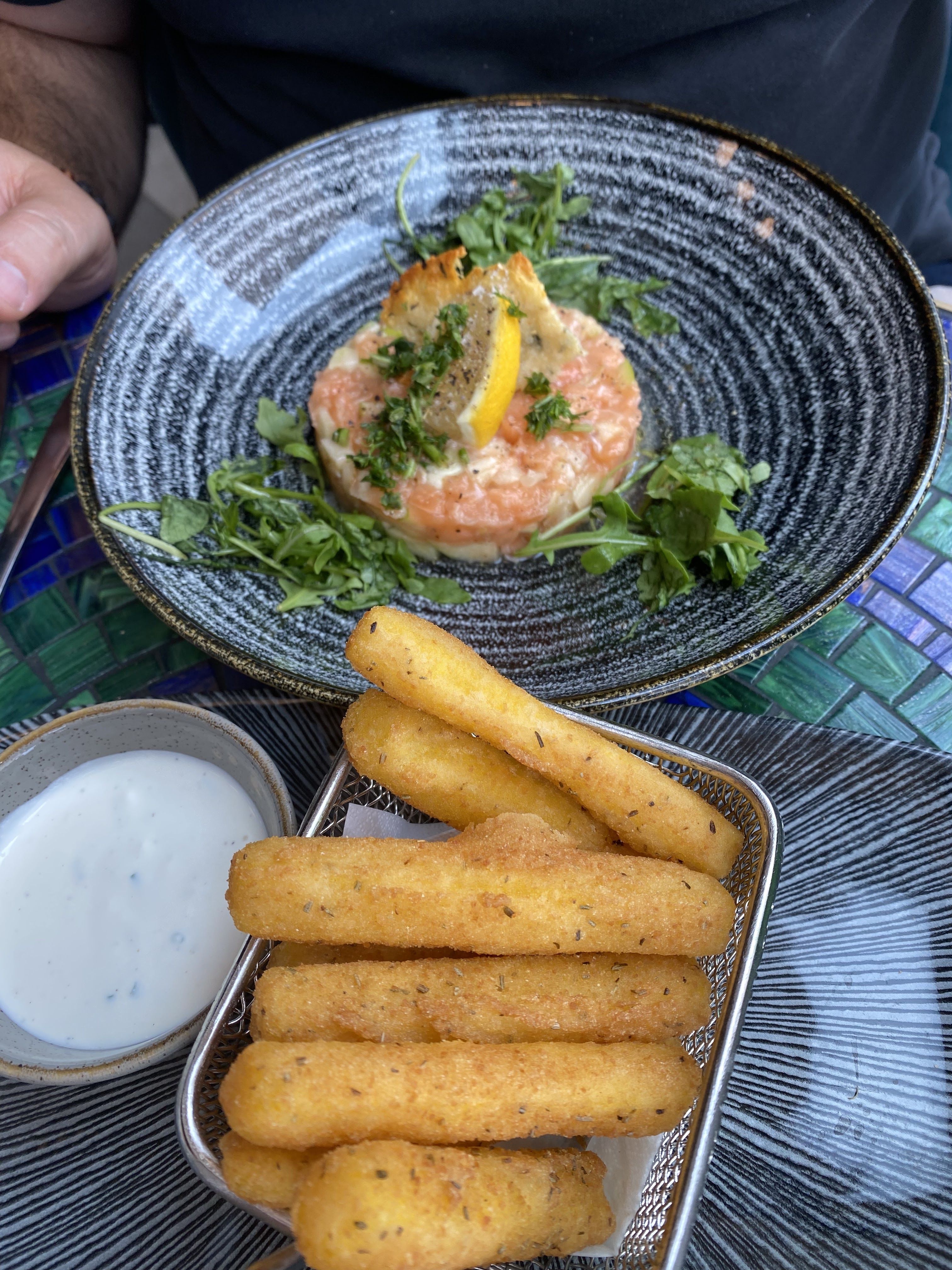 Pâtes carbonara apportées froides et ils ont ajouté du persil dessus qui n'est pas de la carbonara. Le tartare de bœuf aux pommes de terre noires de How Burnt They Were!!! 👎🏿👎🏿👎🏿👎🏿👎🏿👎🏿👎🏿👎🏿👎🏿👎🏿