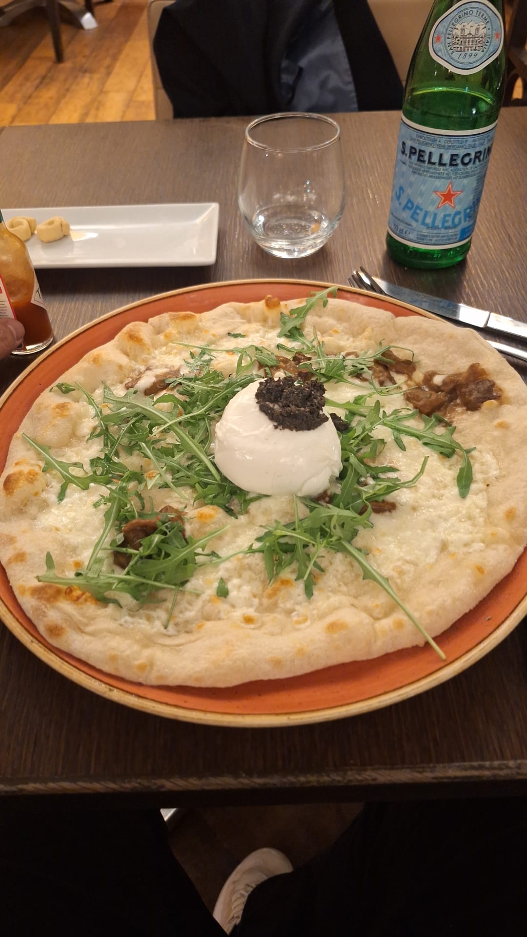 Pizza a la truffe a 18 euros qd même!...sur la carte , il est bien noté lamelles de truffes d été.... Il n' y en a aucune!!! Nous demandons au serveur qui ramène un purée de truffe ...en guise de lamelles ! Non, il n' y en a pas!!!! Et la burrata ...et une mozza mais absolument pas crémeuse ou coulante comme une vraie burrata!Attention à modifier votre carte!!!!! Pour ma part, escalope marsala , bien servie ....mais la sauce ressemblant a de l' eau ... Très peu crémeuse et insipide! Nous étions assez satisfait en général mais sous ne savons pas si nous reviendrons ! Dommage!