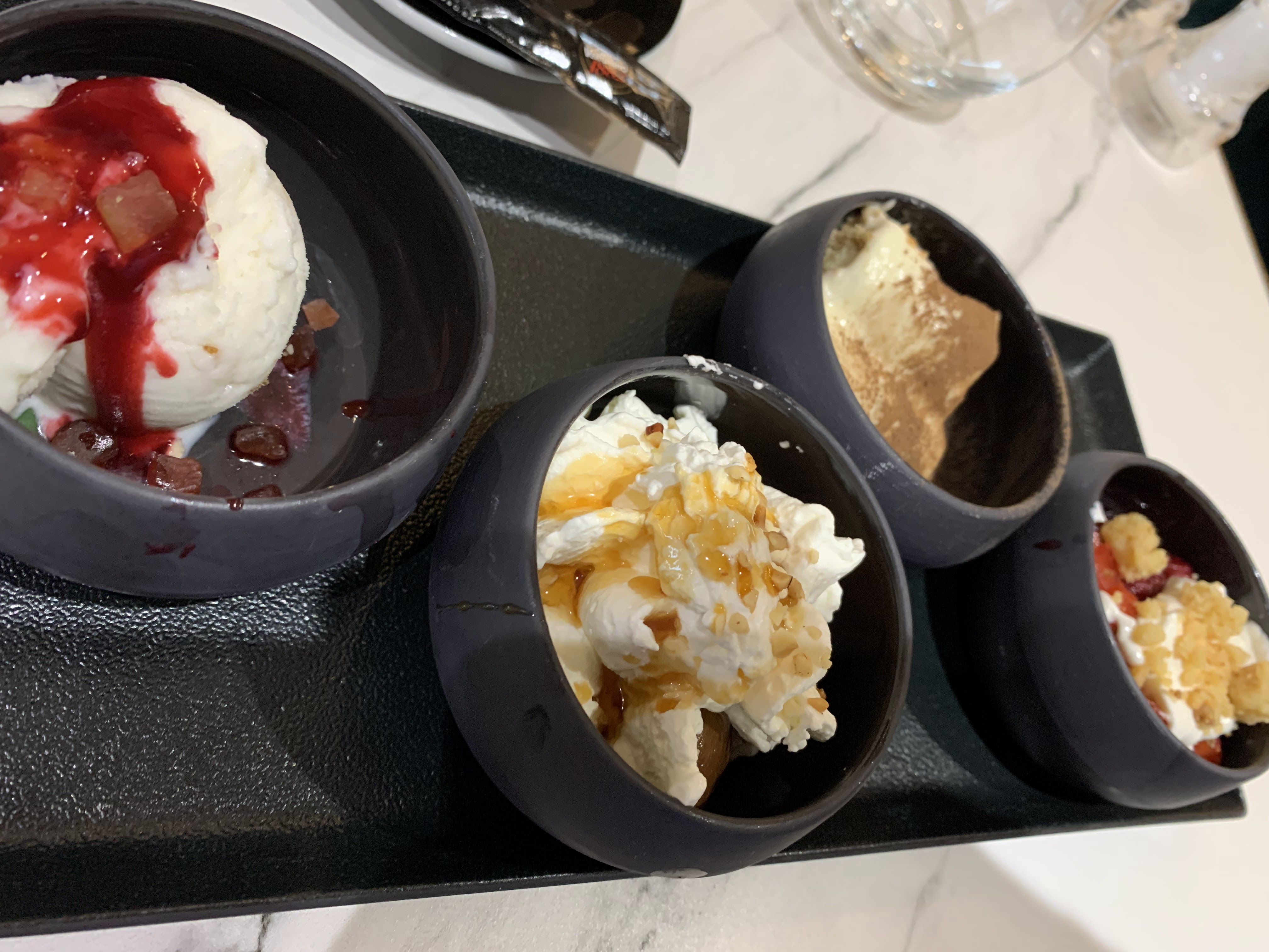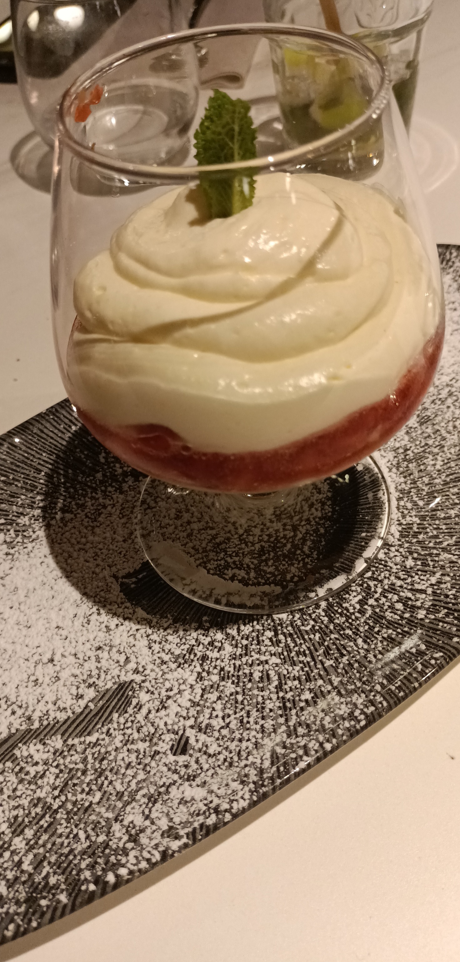 Risotto noix de st Jacques j’avais déjà pris et elle était excellente cette fois ci bof le riz pas crémeux du tout plutôt goût d’eau !et la mousse chocolat servi dans un pot à confiture granuleuses je n’irais plus privilégier la qualité à la quantité