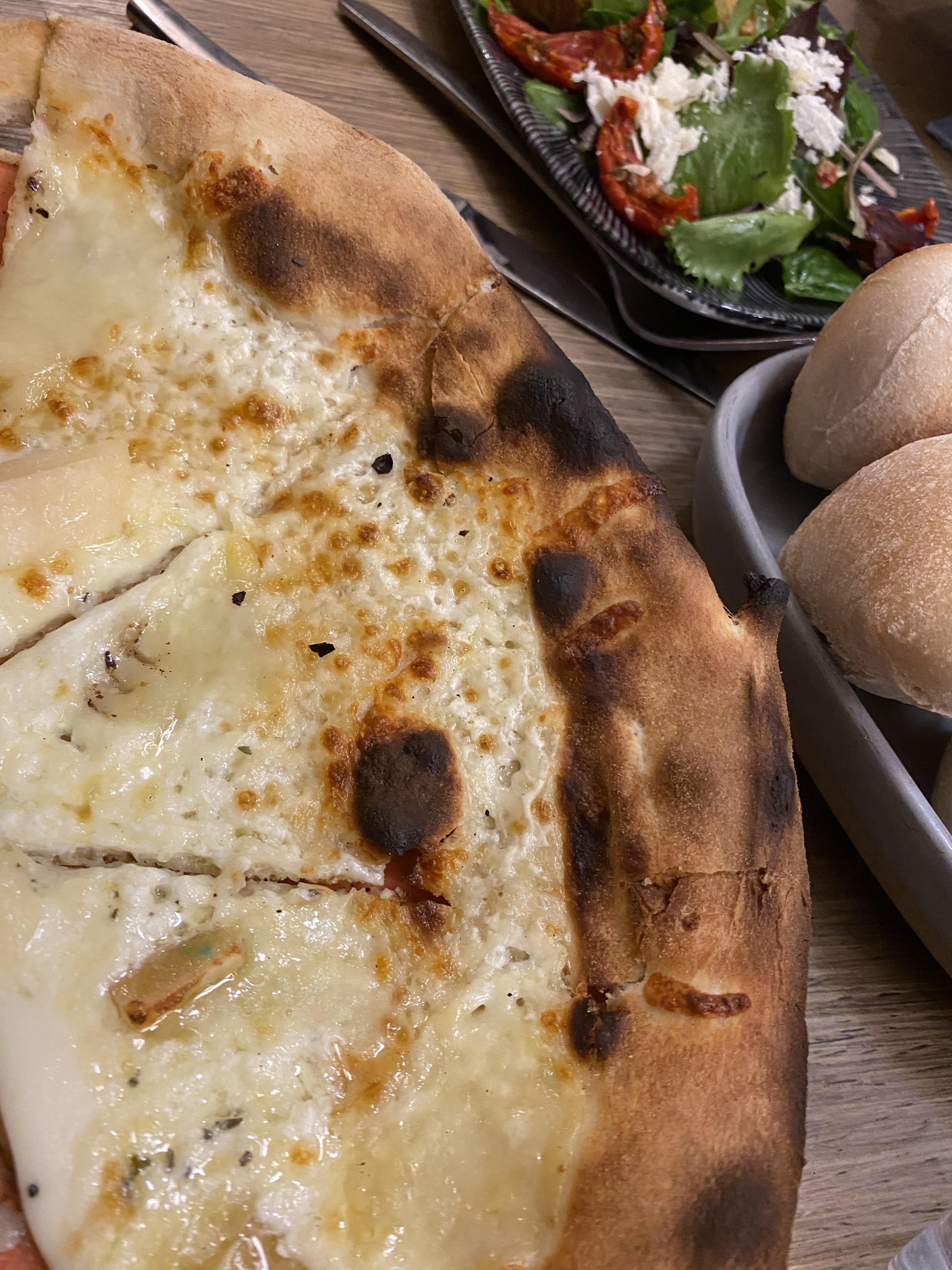 L'accueil et le personnel sont au top, très gentil, serviable, très poli. Intérieur du restaurant et chaleureux et très bien décoré. Déception sur les pizzas , la pâte est vraiment dur à couper même avec le super couteau!!! La pizza 5 fromages n'avait pratiquement pas de goût j'ai dû remettre du sel et du poivre et du parmesan. Et l'autre pizza la Régina pas beaucoup de garniture et fade. Du coup déçu par les pizzas.