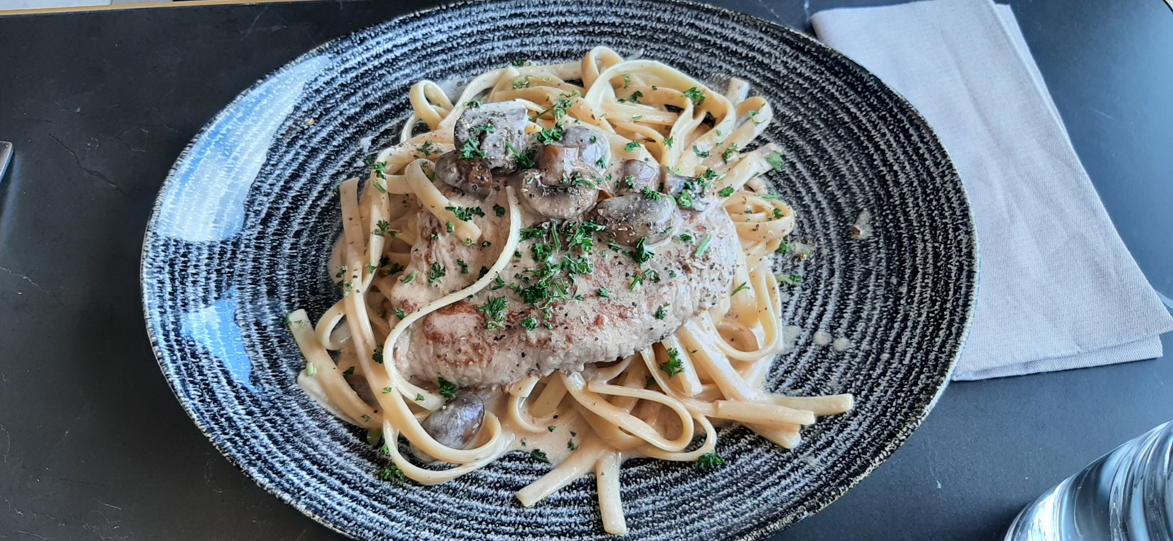 Bon repas mais l'escalope et les pâtes tièdes. Serveur très sympathique.