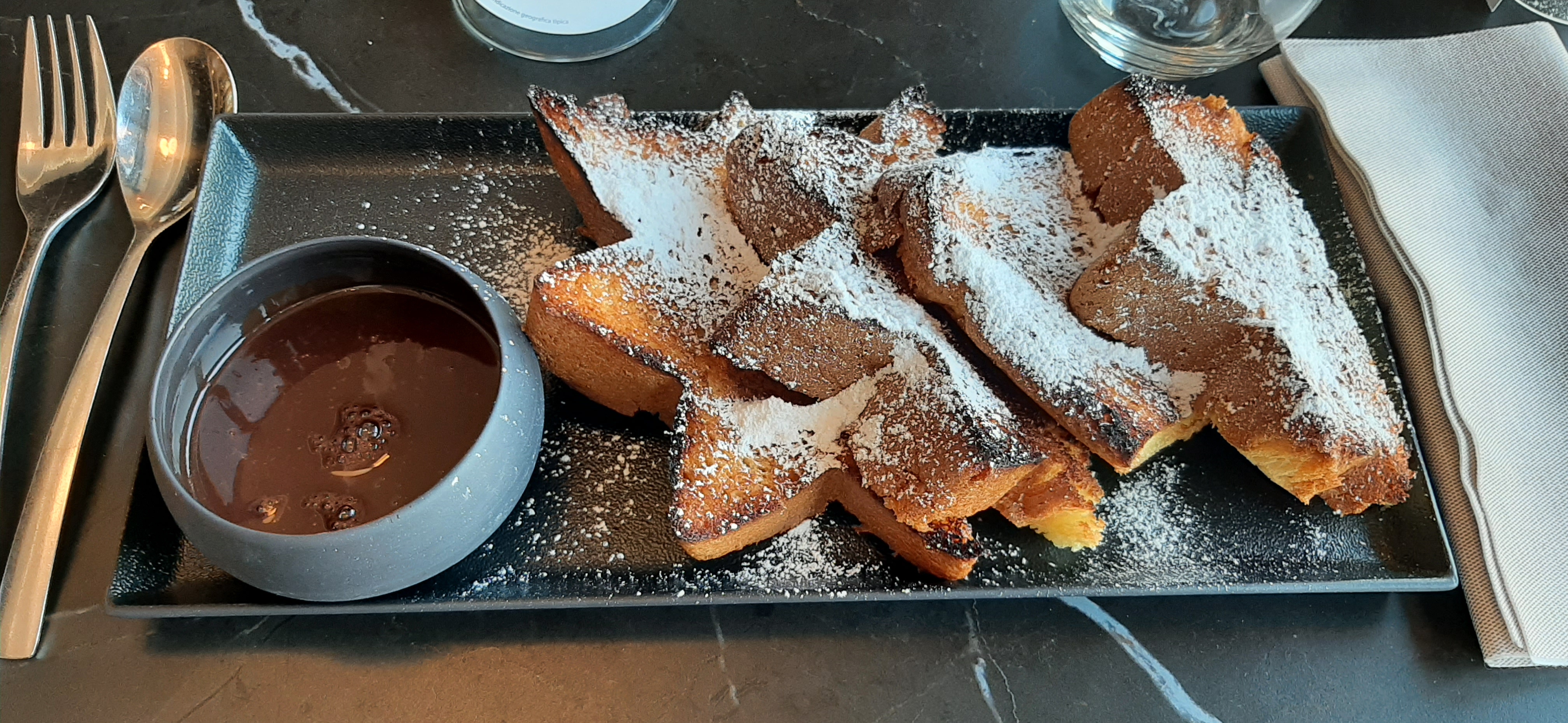 Une bonne note bien méritée. Un jour férié avec un petit manque de personnel ils ont assuré un service irréprochable plutôt que de surcharger et ne pas satisfaire leur clientèle. C'est assez rare pour le noter. La nourriture est franchement bonne (l'intense chocolat porte bien son nom 🥰) et les prix pratiqués sont corrects et l'accueil est chaleureux. Les toilettes sont très propres 👍
