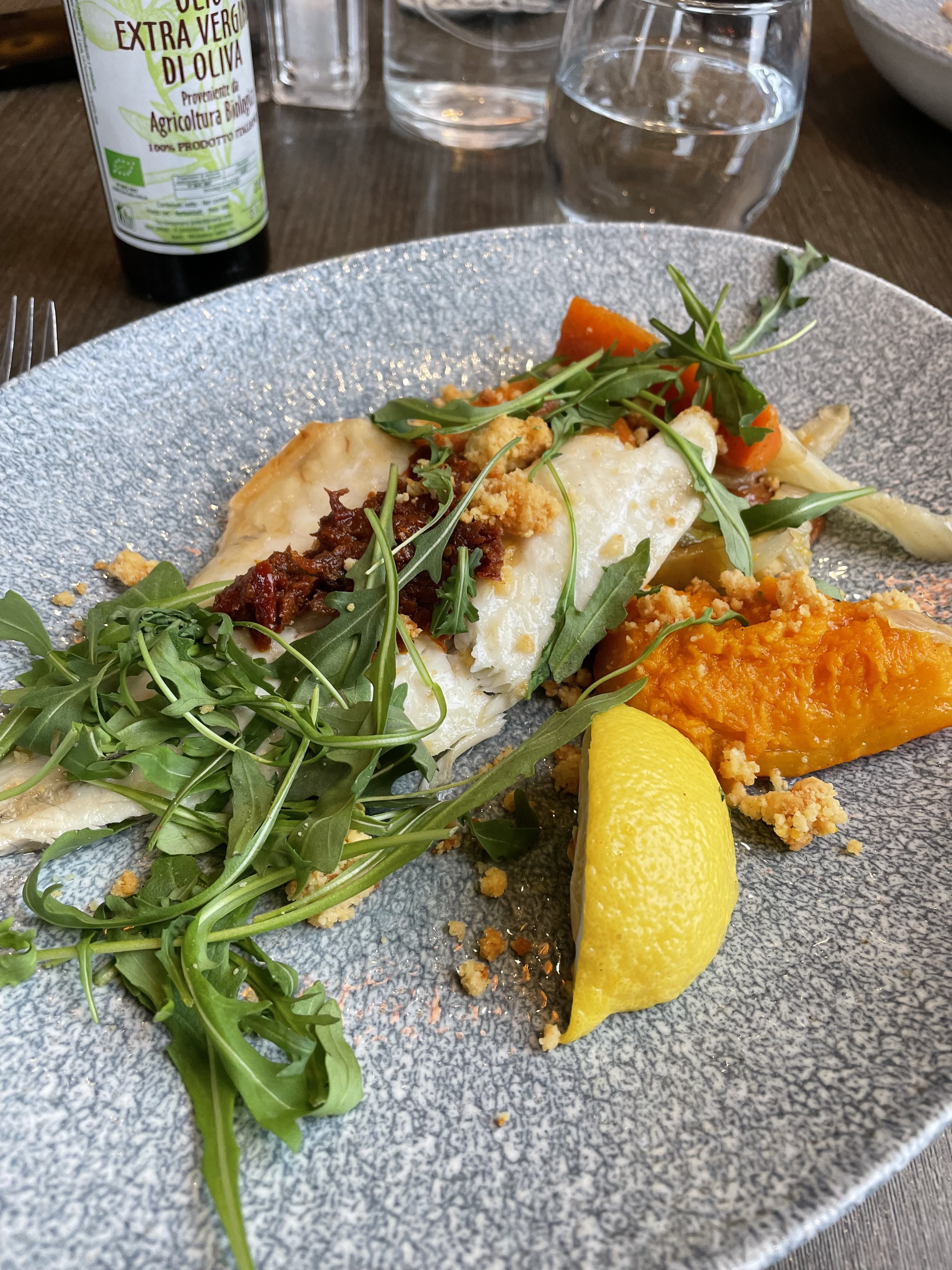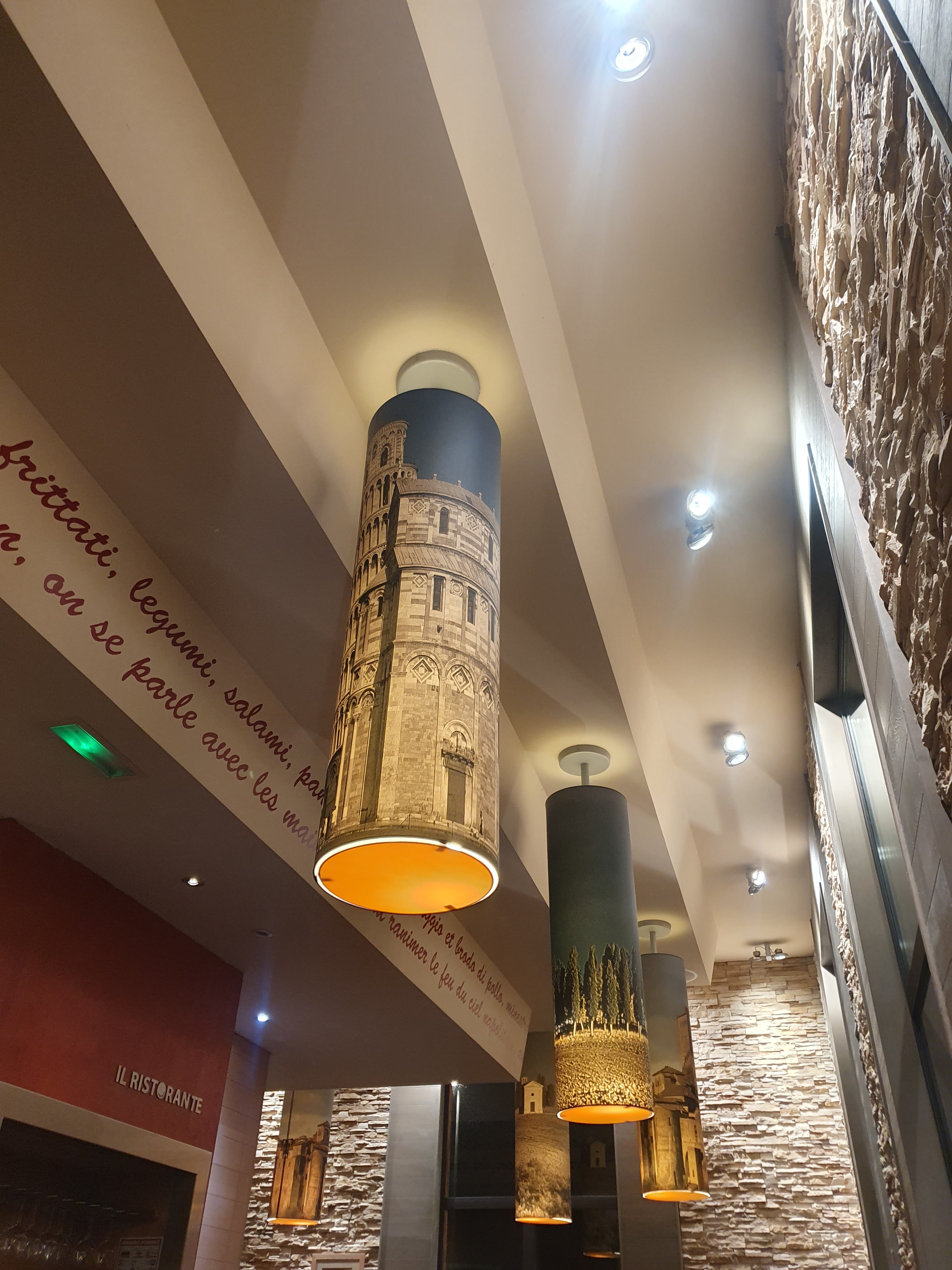 Très belle décoration qui invite au voyage en Italie. Le thon avec frites de polenta extra et le st Pierre en croûte de pistaches a la carte du moment excellents, le tout accompagné d’un Lombrosco rosé