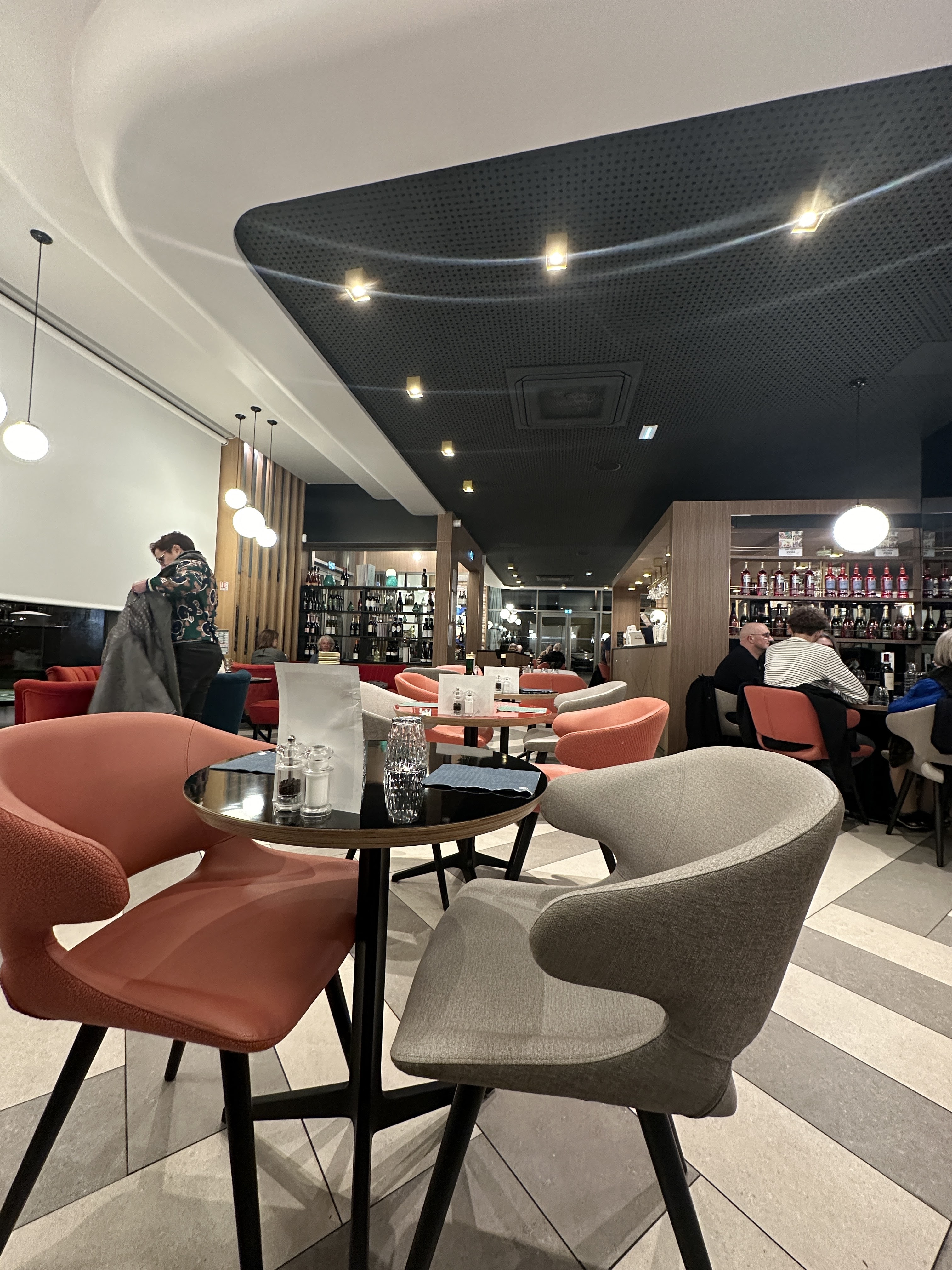 Très belle surprise. Alors que l'emplacement et l'extérieur me paraissaient presque impersonnels, nous sommes entrés dans un espace spacieux, chaleureux, au décor très cosy constitué de canapés, fauteuils. Accueil également très chaleureux, confirmé par la suite par tous les collaborateurs qui se sont occupés de notre table. Cuisine de qualité. A découvrir.