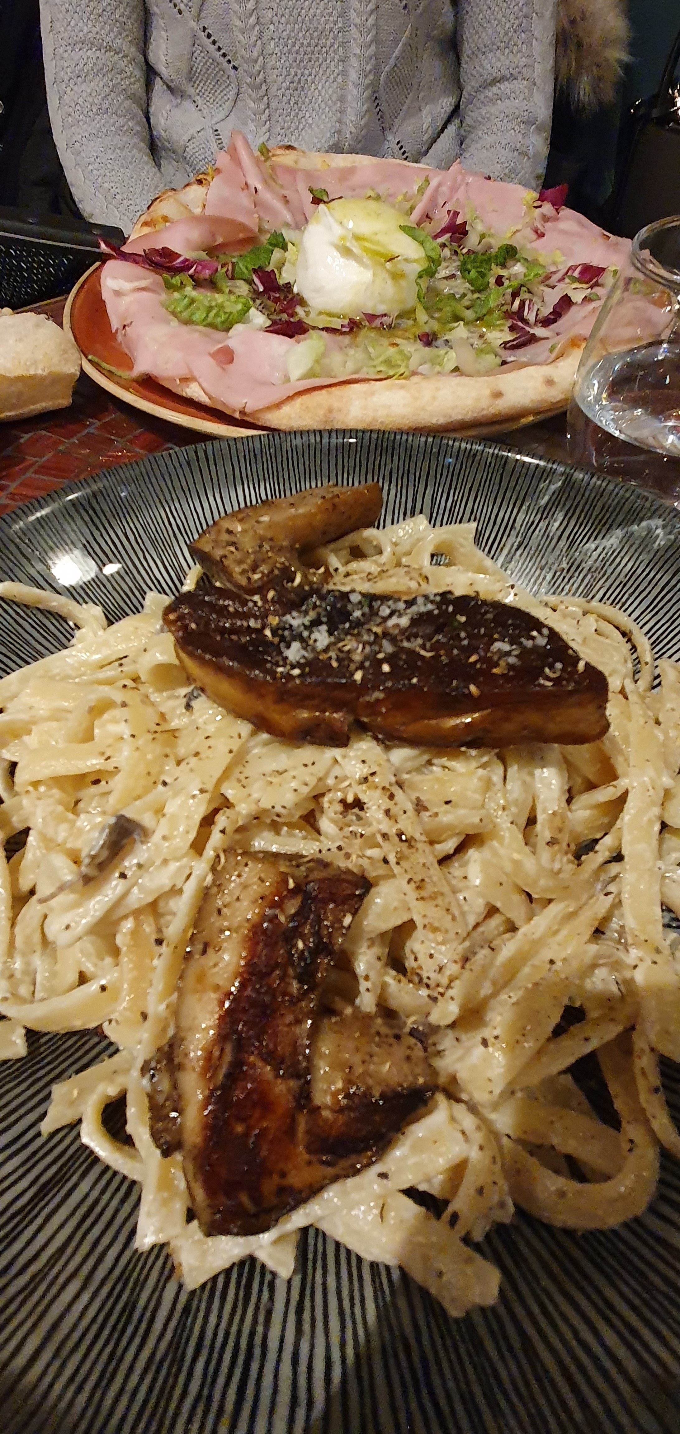 Première et dernière fois dans ce restaurant les pâtes aux champignons et au foie gras sont froides avec 2 minis morceaux de champignons obligé de re demander un supplément de champignon et je ne parle même pas des pâtes qui était froide avec un morceau de foie gras posé à côté qui faisait pitié déçu moi qui pensait à un bon restaurant italien celui ci est rayé de ma liste.