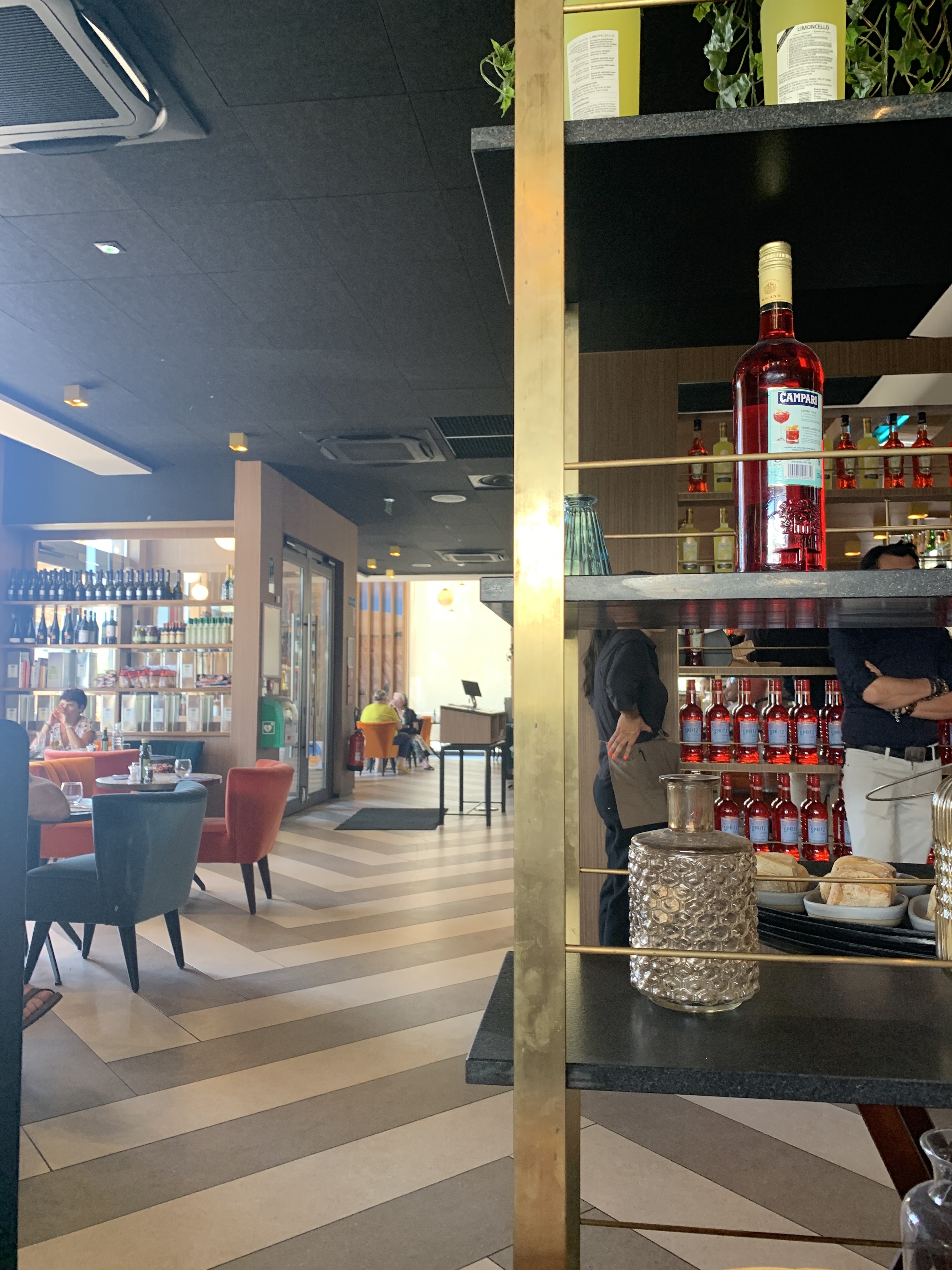 Endroit très lumineux mais un peu trop grand à mon goût. Et ce côté supermarché avec divers produits italiens à acheter...pas pour moi. Sinon plutôt bien mangé et le service parfait.