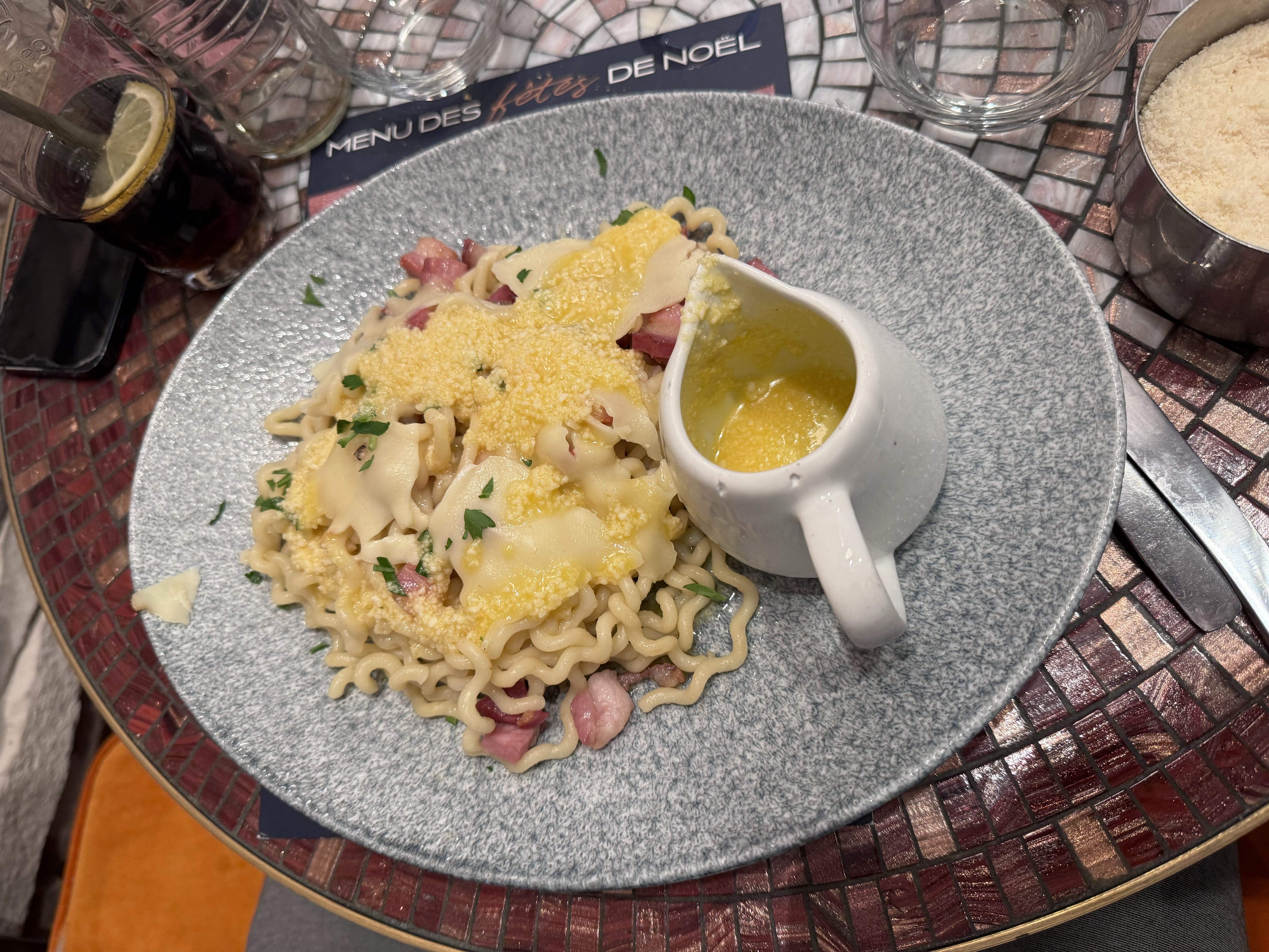 Première fois dans ce restaurant, nous avons très bien mangé. Les pâtes carbo, sans crème fraîche, étaient délicieuses. De plus le cadre est joli. À bientôt