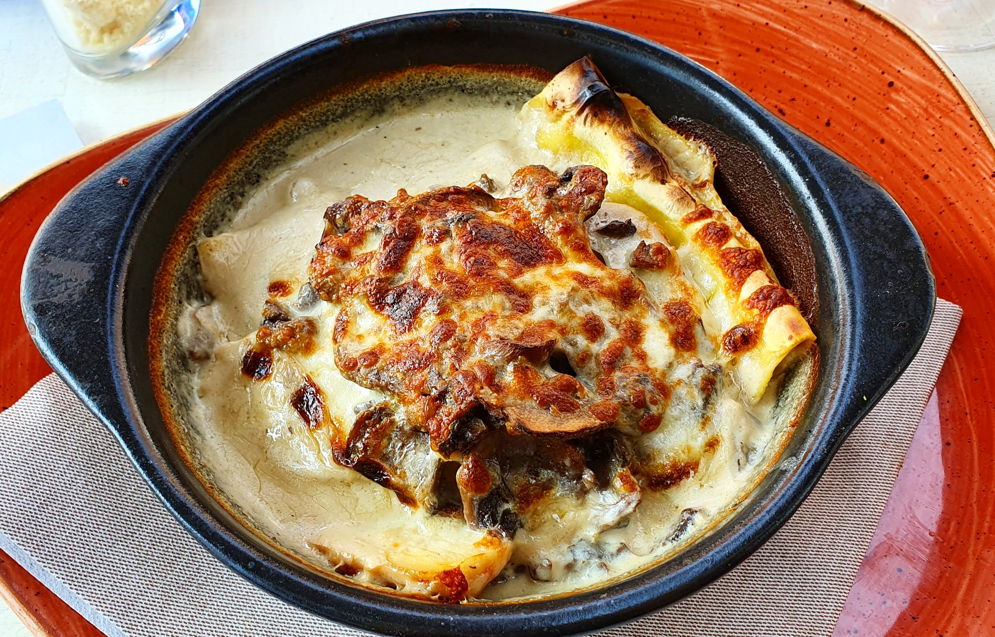 Déjà je tien à remercier le responsable pour les 10% car malheureusement notre venu ne nous fera pas revenir. La serveuse en chemise rouge désagréable. Les autres serveur au top a pars lattente tres longue comparer au resultat.. J'ai commander deux pizza pour moi et ma conjointe et bah à pars de la pâte et quelque garniture 0... pas de basse en saveur ni de vu mes deux amies avez pris lasagne et bah à pars de la pâte et trois bout de viande ce n'était que des des pâte tomate.. vraiment dommage car la carte est appétissante mais le résultat n'est pas la ... merci encore au responsable d'avoir était compréhensif.