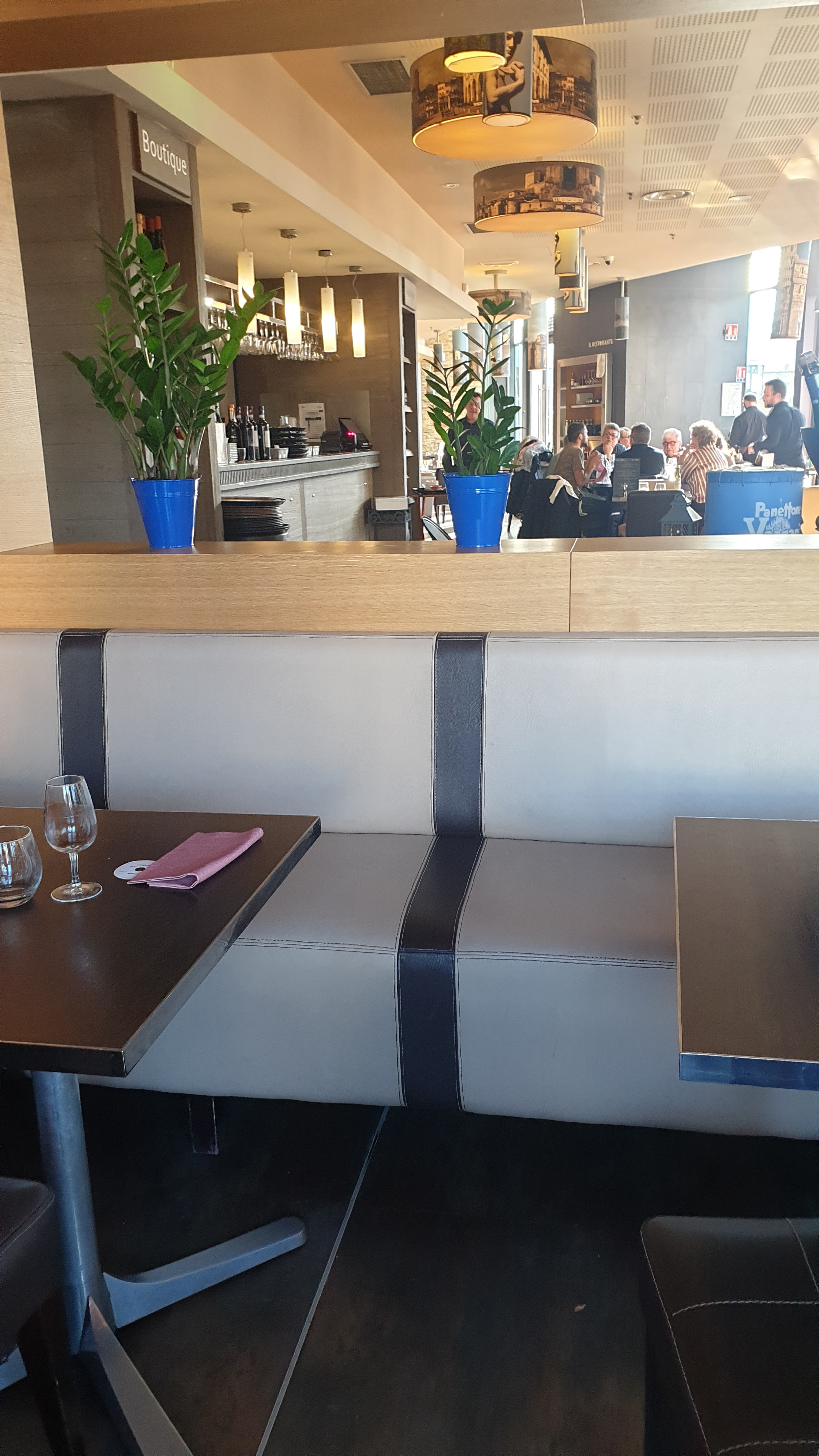 Très bon restaurant italien,acceuil super le serveur sympa et avec de l'humour.La salle du restaurant grande est bien décorée.La cuisine est vraiment bonne,il y a du choix .Vaste choix de vins italiens avec possibilité d'acheter différents produits sur place.