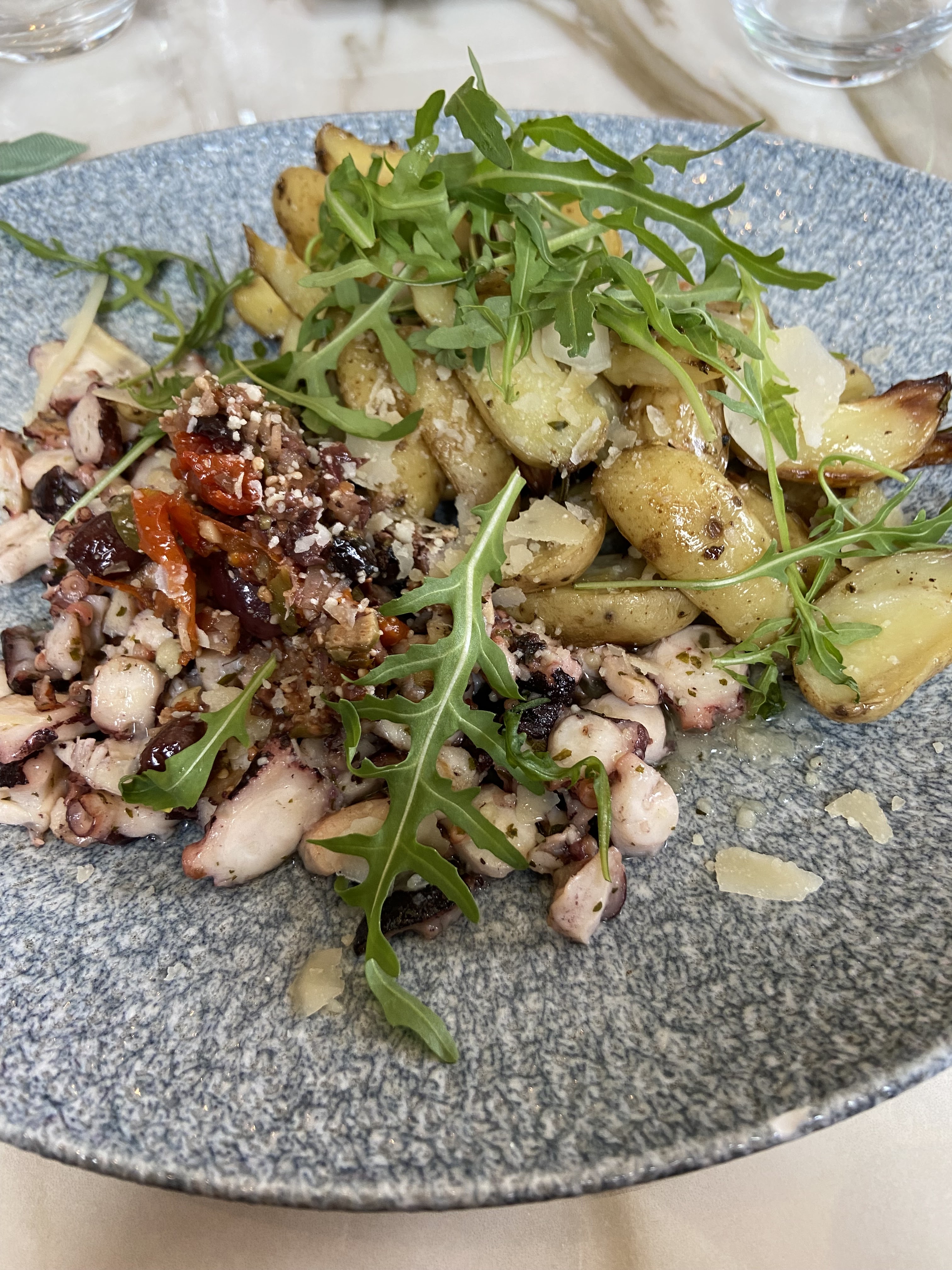 Restaurant très bien placé, ds une zone commerciale. Déco sympa. Très bon accueil et service. Très belle carte. Ns avons choisi un des plats du moment : du poulpe avec des câpres, des olives, du parmesan, des tomates séchées, et de la roquette, accompagné de petites patates sautées à l’huile d’olive. Plat goûteux et généreux. En dessert, ns avons eu le plaisir de déguster une excellente mousse au chocolat noir. Ns n’avons pas pris de vin. Le rapport qualité / prix est très bon. Ns recommandons ce restaurant. Ns y reviendrons si l’occasion se présente. Attention : le parking est difficilement accessible.