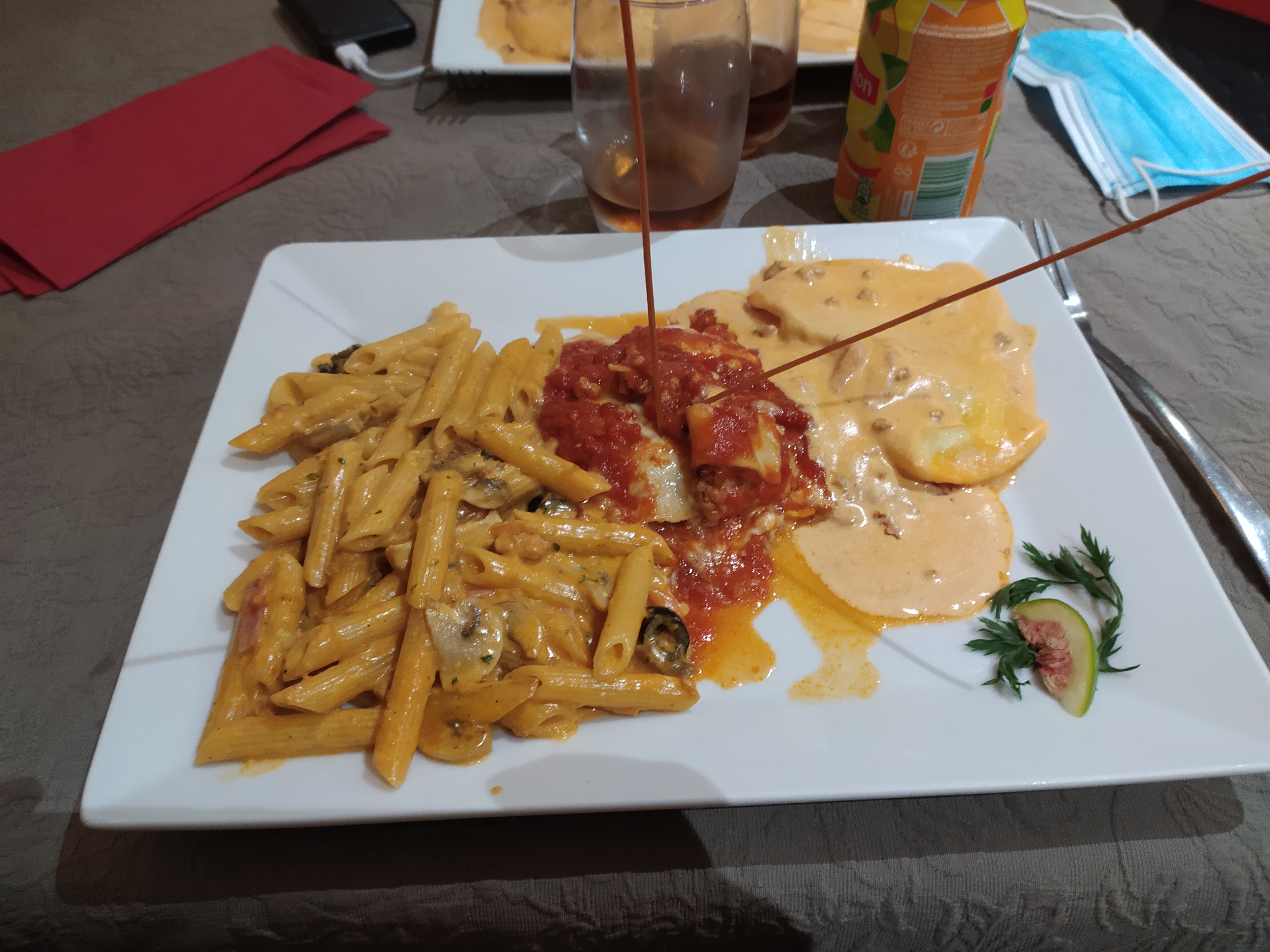 Yres bon restaurant italien et les assiettes de pâtes yres copieuses