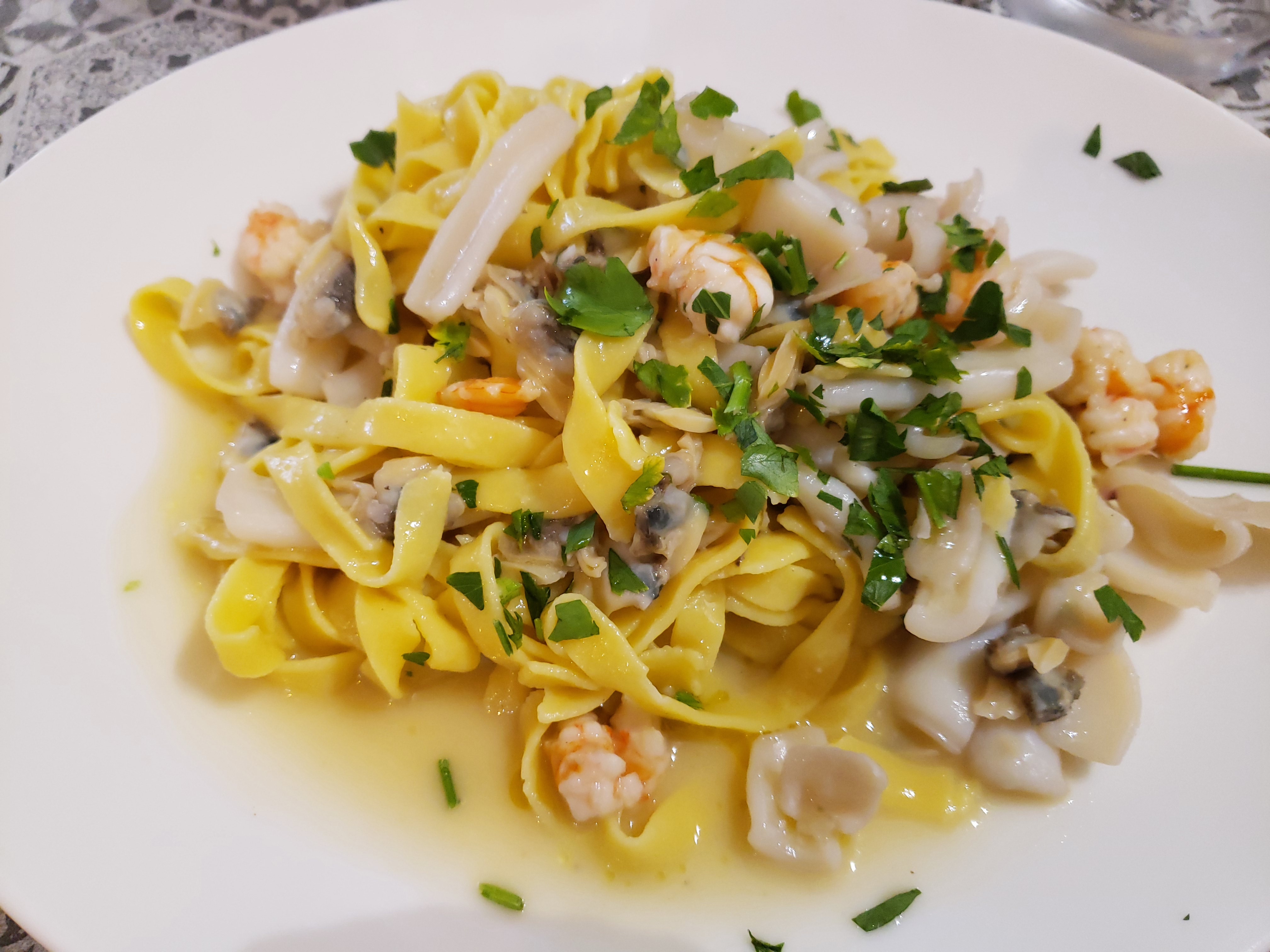 Palourdes très bonnes, mais taglioni aux fruits de mer comme du plastique décongelé :(