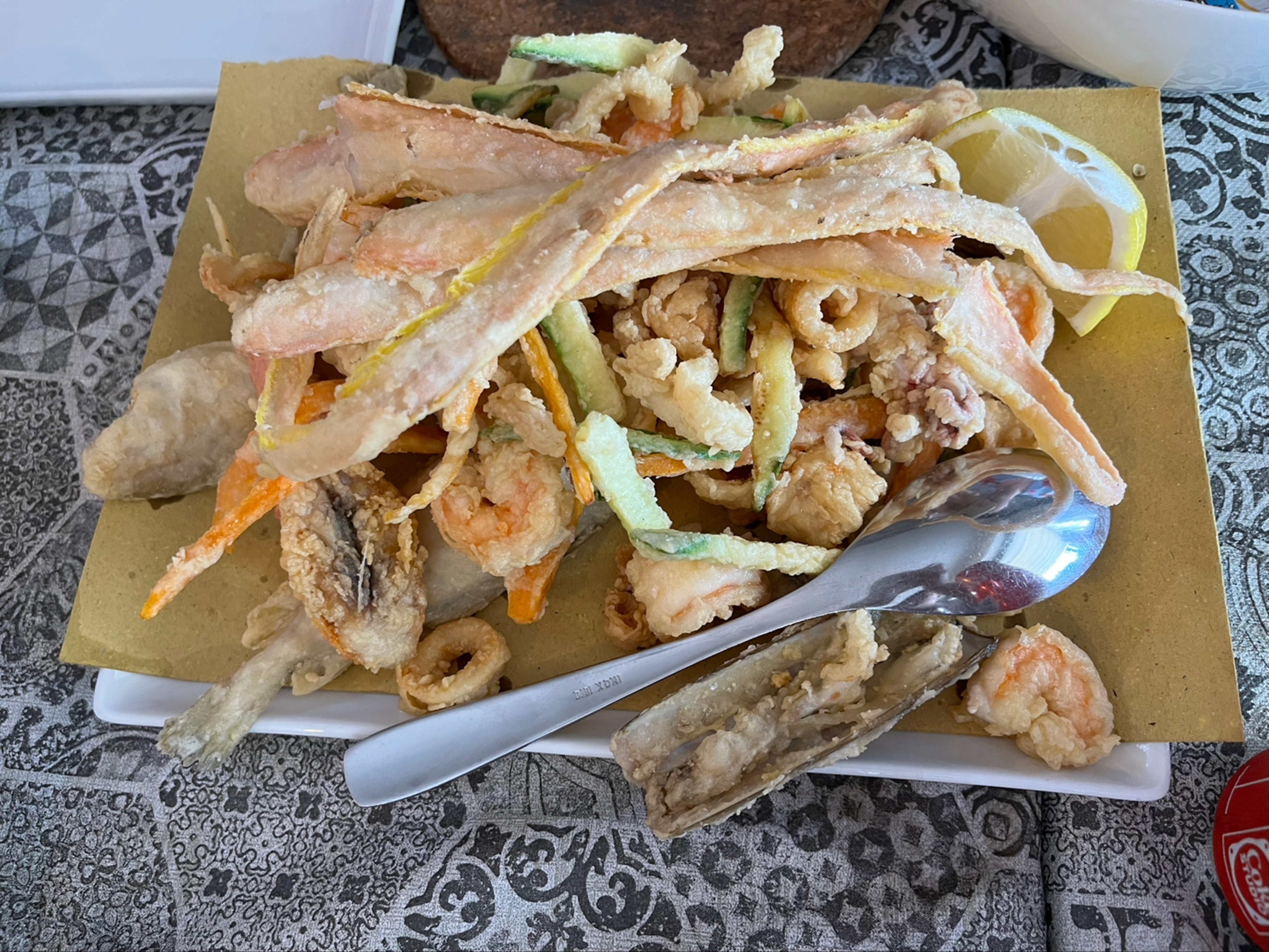 Friture mixte extra ainsi les spaghetti aux palourdes.