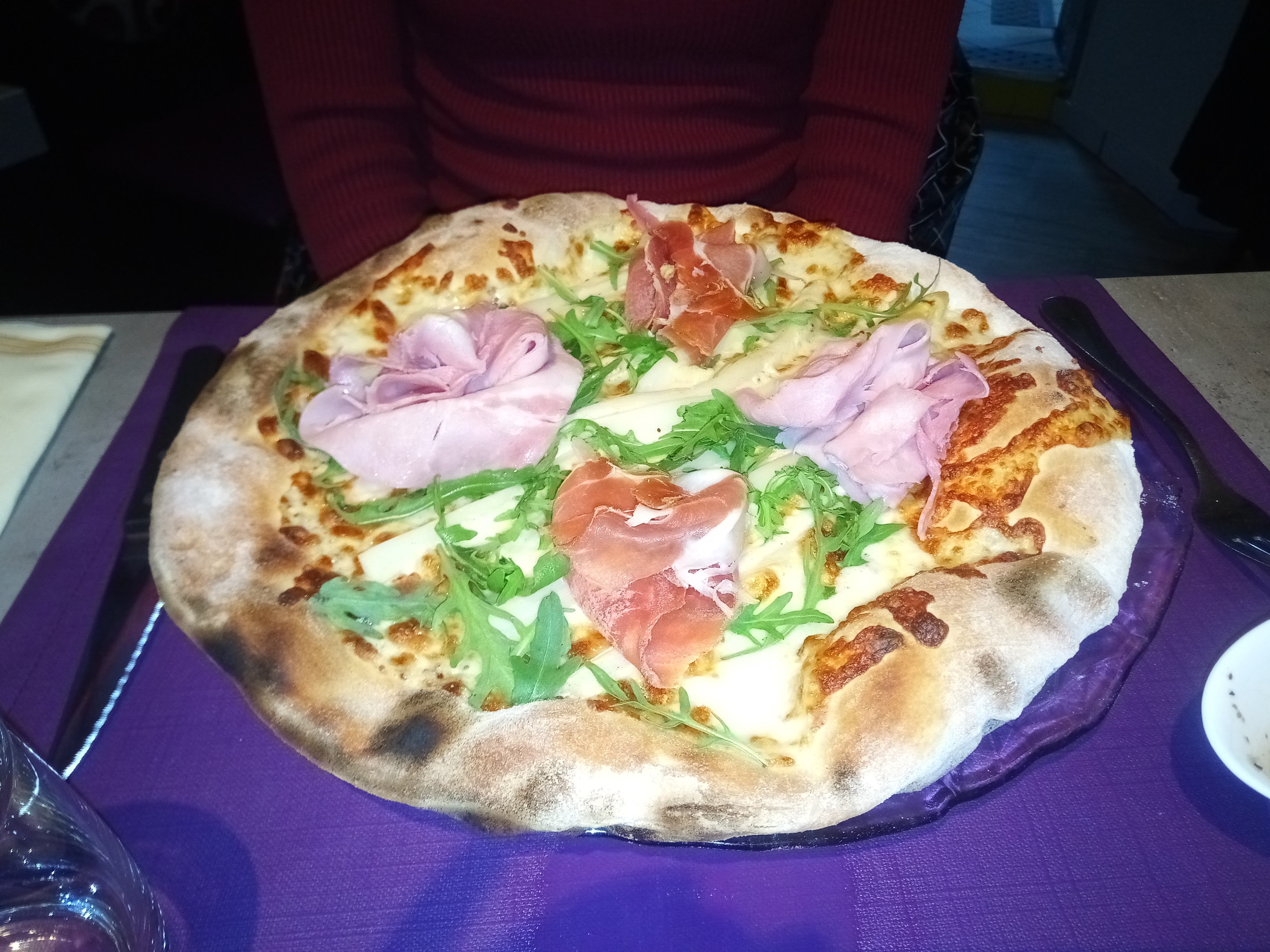 Malgré l'arrivée tardive et sans réservation, ils nous ont trouvé une place. Les pizza sont bien cuites et vraiment très bonnes. On a mangé en terrasse, juste à la tombé de la nuit à deux pas d'une belle église. Très sympa.