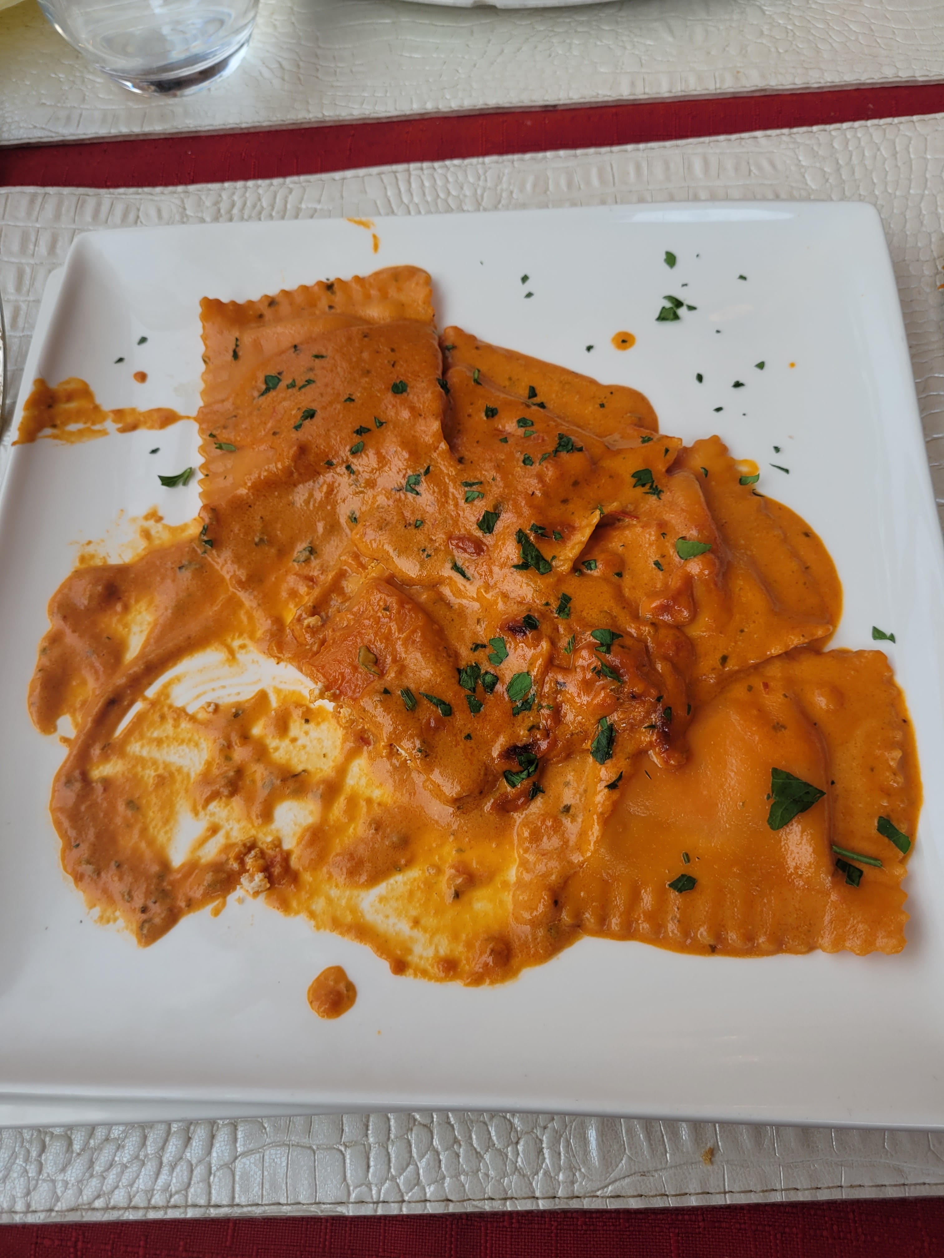Alors pour une première expérience ce fut une déception car déjà on va commencer par le plat de raviolis au saumon qui coûte quand même 17€ mais aucune trace de saumon dans l'assiette avec 5 raviolis qui ce courraient après. Ayant fait la remarque à la serveuse de ce désagrément, pas vraiment de réaction et s'en va. Et puis viens l'arrivée du dessert, ayant pris un café gourmand, j'ai pu trouvé un moucheron sur la brioche imprégné d'alcool et d'ailleurs même la glace à la pistache n'avait pas le goût de pistache et étais alcoolisé. J'ai dû faire la remarque de nouveau mais pas vraiment de réaction encore cette fois-ci, mais je m'attendais quand même à un mini geste commercial et au moment de payer, rien du tout, même pas un désolée pour ce qui c'est passé C'est dommage pour un restaurant italien d'avoir des plats aussi chères avec si peu de quantité voir même de qualités aussi. Première et dernière fois pour moi et mes collègues en tout cas