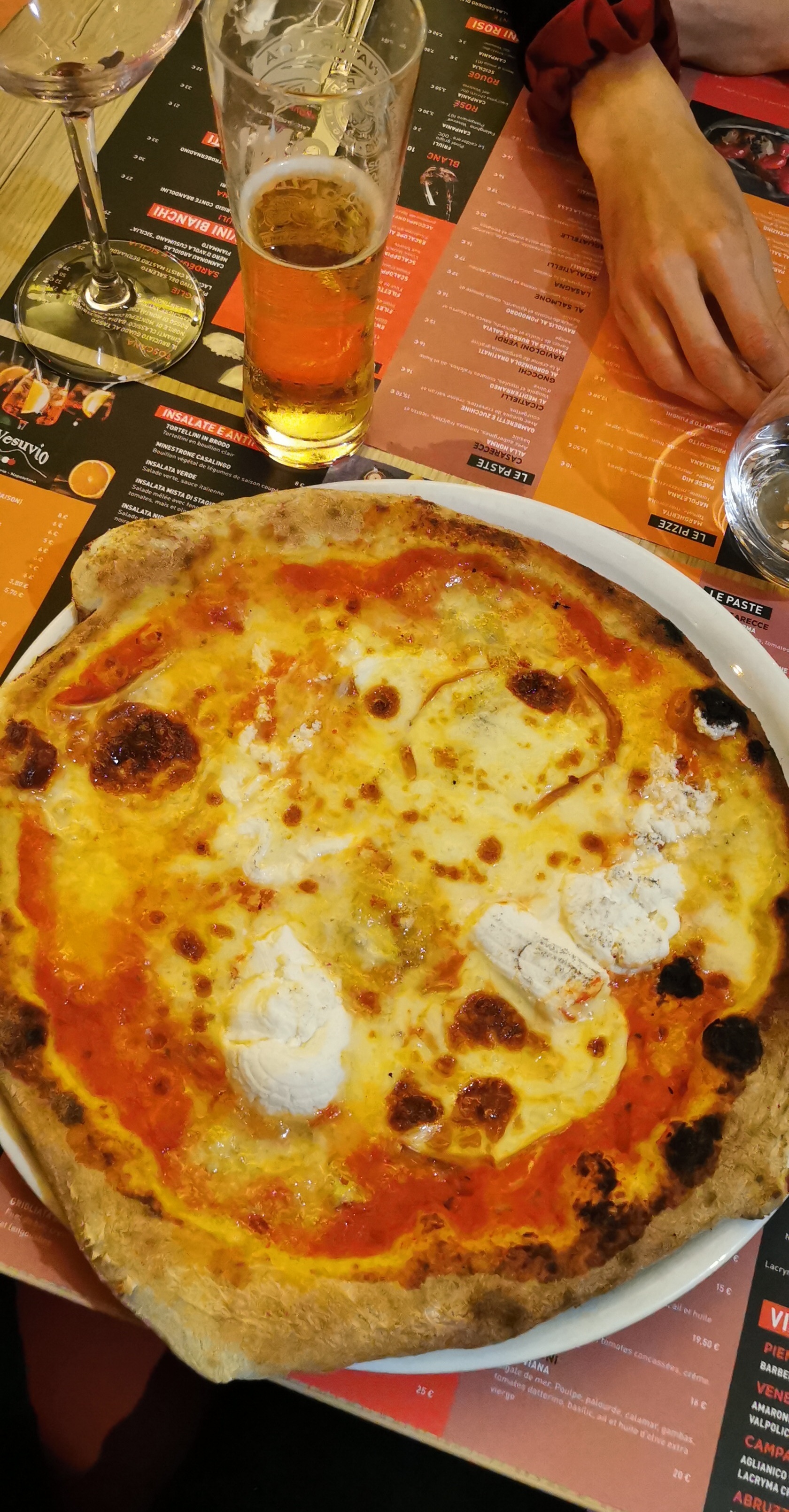 Apéro : un Spritz, sans glaçon et chaud Forcément pas bon. Plat : une Pizza 4 fromages pleine d'eau, pate toute molle (Ingrédients congelés ?) Dur de rater une pizza malheureusement ce fut le cas.