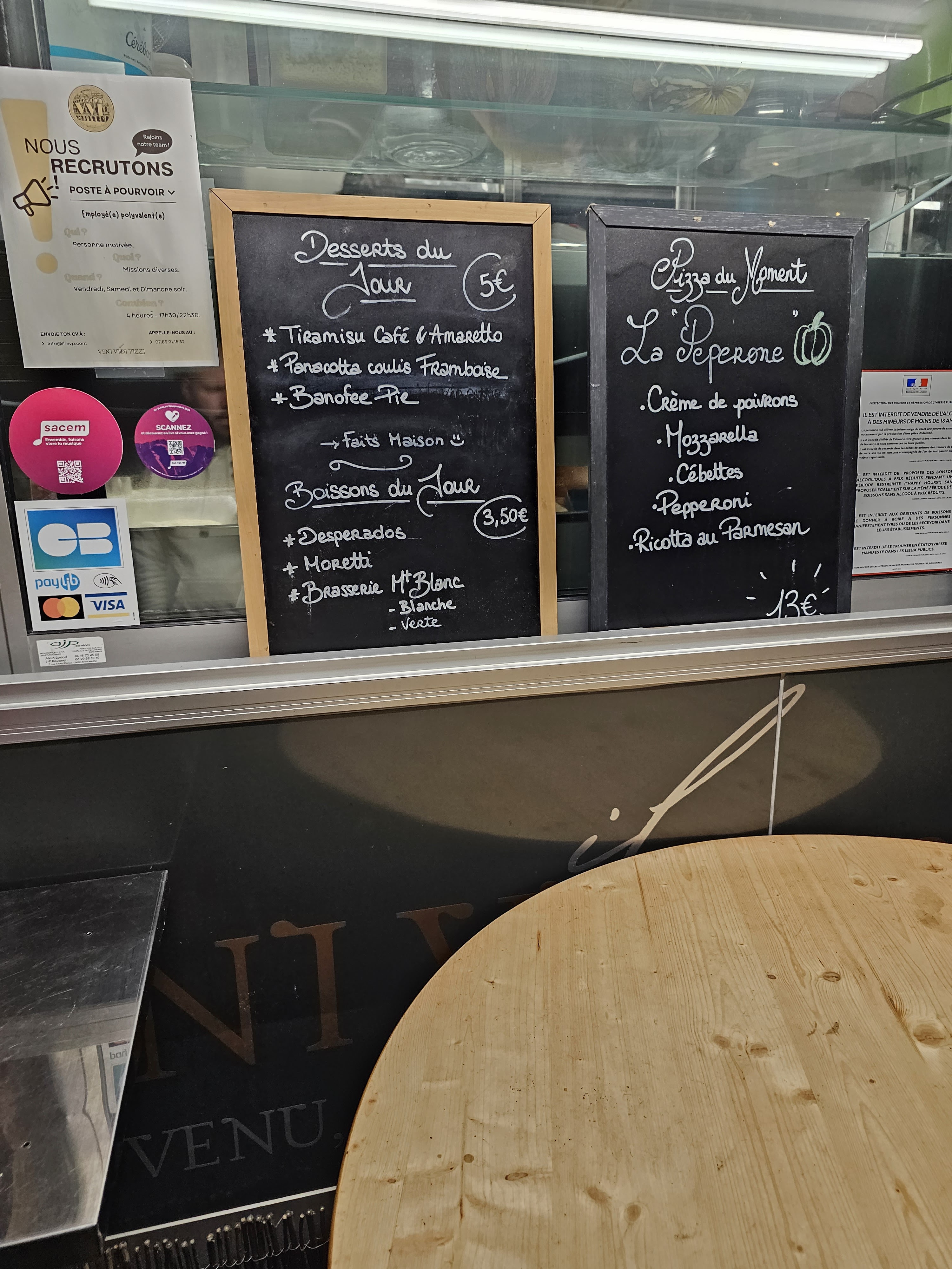 Si vous souhaitez manger de très bonnes pizzas, ainsi que d'autres plats, je vous conseille de tenter l'expérience Veni Vidi Pizzi. Nous reviendrons sans hésiter, car les pizzas sont parmi les meilleures que nous ayons goûtées à Groisy et dans les environs. J'espère que cette jeune équipe motivée et sympathique maintiendra la qualité des produits. Bon appétit !