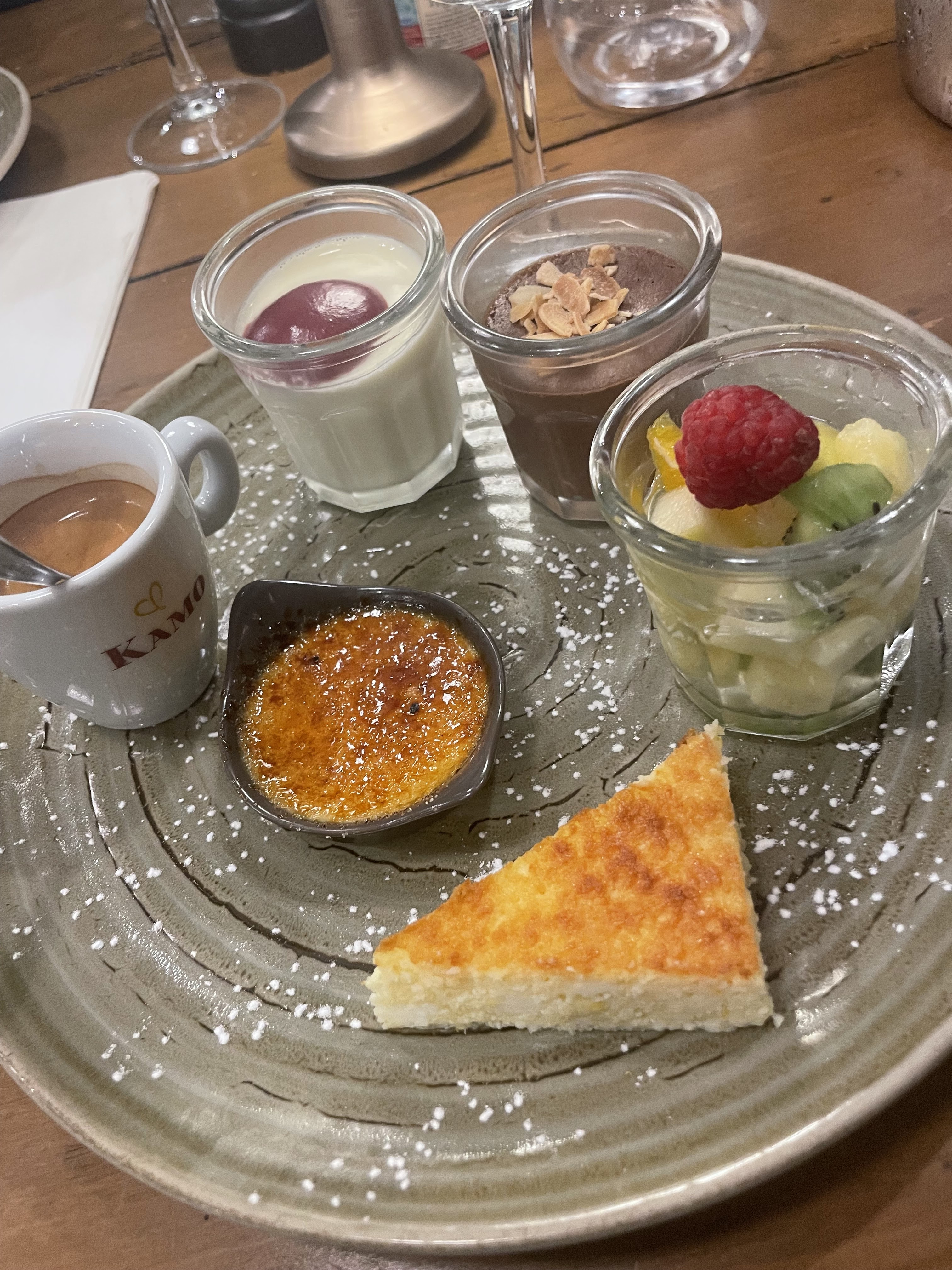 Un sans faute ! La qualité des plats à la carte.. Ne ratez pas le café très gourmand ! Tout cela avec un personnel aux petits soins pour ses clients ! Bravo !