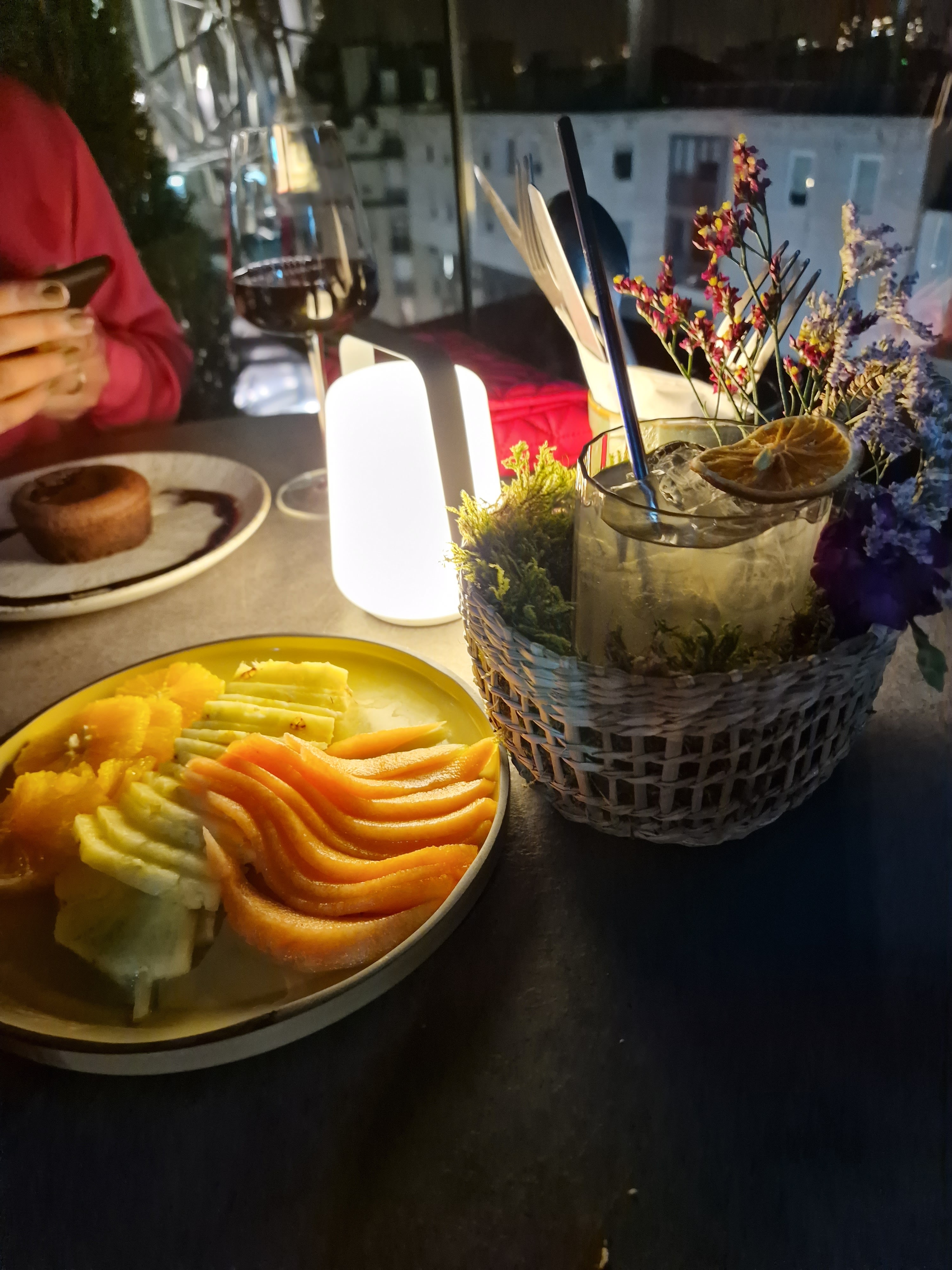 Nous sommes allés au rooftop pour prendre un verre avec la vue, mais en fait la vue est gâchée par la lumière du bar. C’est un rooftop entièrement couvert (du moins, là où on était) et je trouve ça un peu cher.